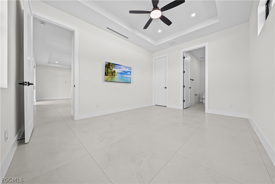 The primary suite is designed as a private retreat, complete with dual sinks, a well-appointed en-suite bathroom, and generous space for relaxation.