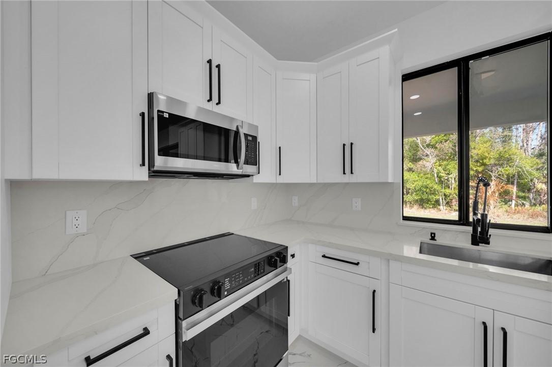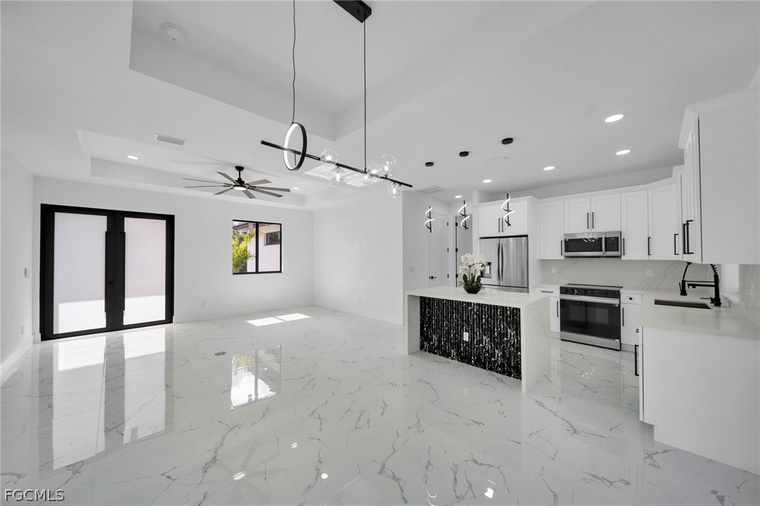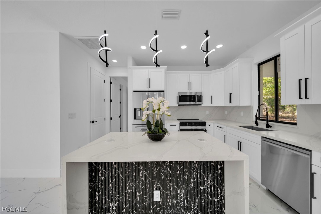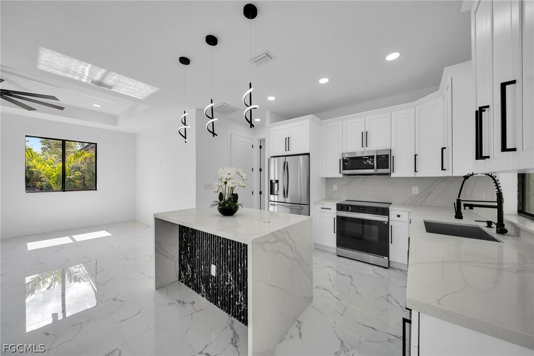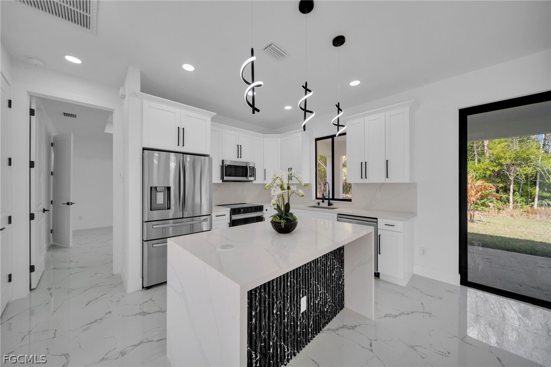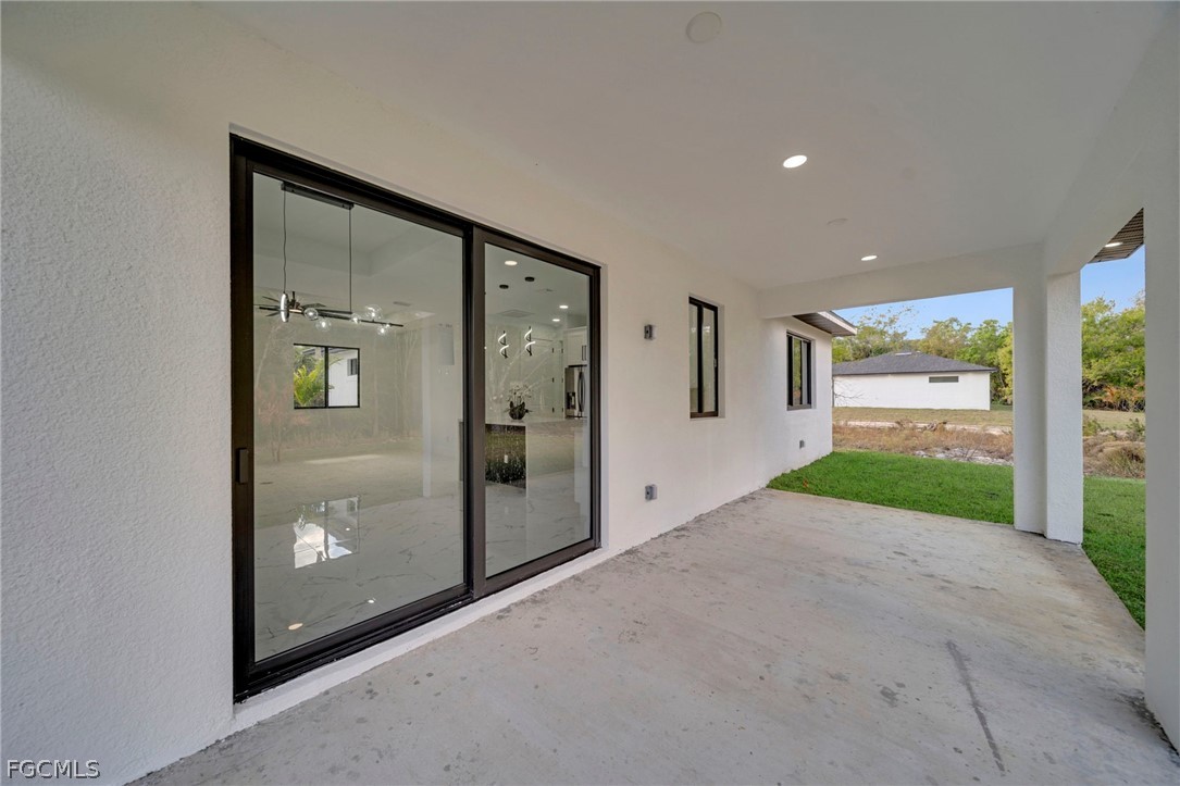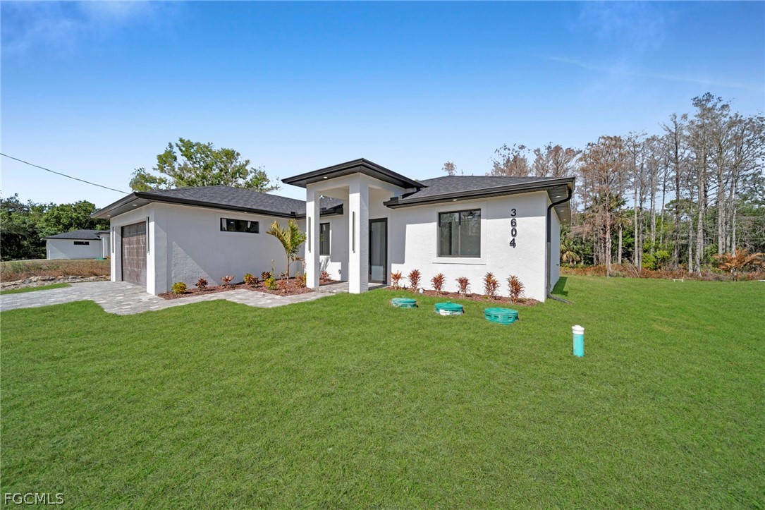 Brand-new construction offering 1,387 sq ft under air with a thoughtfully designed 3-bedroom, 2-bath floor plan located for a future pool. This modern home features an open-concept layout with high ceilings, oversized tile flooring throughout, and abundant natural light. The contemporary kitchen boasts quartz countertops, custom cabinetry with designer hardware, stainless steel appliances, and a spacious island ideal for entertaining. Impact windows and doors, sleek lighting fixtures, and quality finishes elevate the home’s modern aesthetic. The primary suite offers a spa-inspired bathroom with a glass-enclosed shower and stylish finishes. Enjoy a covered lanai overlooking a large backyard with plenty of room to add a pool. No HOA, no CDD, and located in a growing area with new construction surrounding—perfect for a primary residence or investment opportunity.