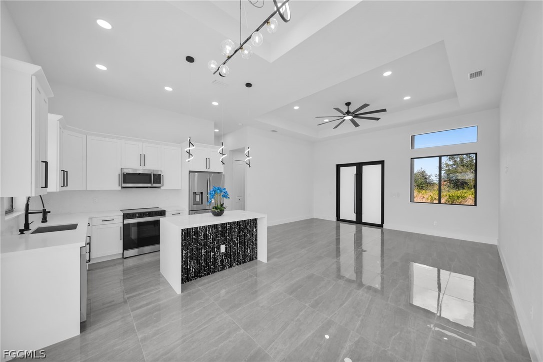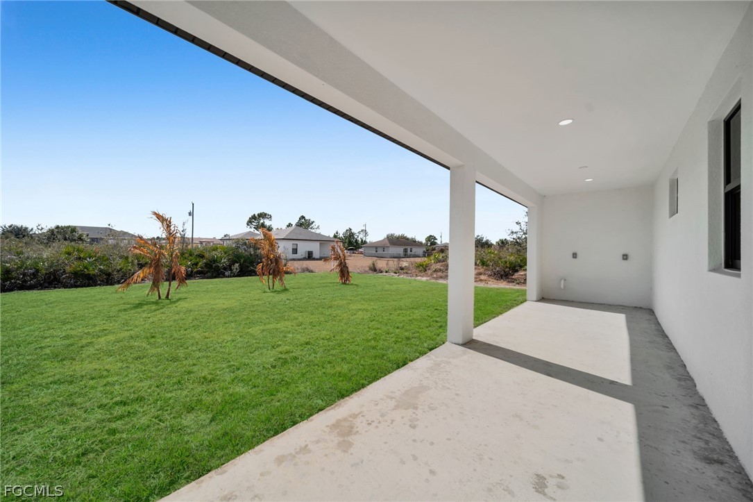 Brand-new construction offering 1,507 sq ft under air with a thoughtfully designed 3-bedroom, 2-bath floor plan plus an additional half bath conveniently located for a future pool. This modern home features an open-concept layout with high ceilings, oversized tile flooring throughout, and abundant natural light. The contemporary kitchen boasts quartz countertops, custom cabinetry with designer hardware, stainless steel appliances, and a spacious island ideal for entertaining. Impact windows and doors, sleek lighting fixtures, and quality finishes elevate the home’s modern aesthetic. The primary suite offers a spa-inspired bathroom with a glass-enclosed shower and stylish finishes. Enjoy a covered lanai overlooking a large backyard with plenty of room to add a pool. No HOA, no CDD, and located in a growing area with new construction surrounding—perfect for a primary residence or investment opportunity.