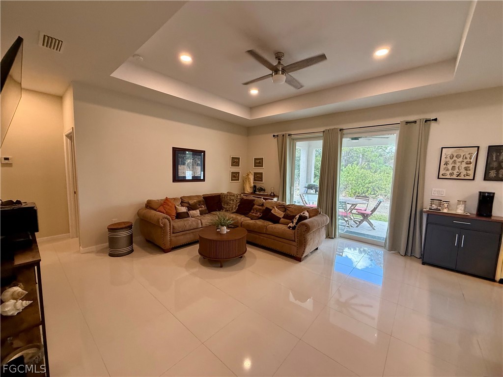 Welcome Home!!!This well-maintained and beautiful home is located in the heart of Lehigh Acres. Built in 2022, this property offers three bedrooms plus a den, two bathrooms, and a two-car garage. It features over 1,700 sq. ft. of living area with tile flooring throughout for easy maintenance. The interior includes an indoor laundry room and an open floor plan that seamlessly connects the living areas, making it ideal for entertaining or family gatherings. The spacious kitchen features an island with a pantry, a breakfast bar, and all included appliances. Additionally, the versatile den/study provides the perfect space for a fourth bedroom, home office, or playroom. Sliding doors lead to an open lanai overlooking a backyard with plenty of room for a pool. Additional features include a sprinkler system, hurricane shutters, ceiling fans, and a water system upgraded with a new open-air aerator and pressure tank.