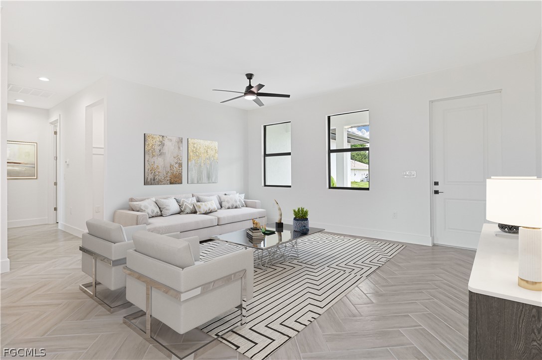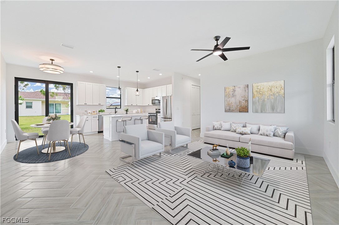 Welcome to this stunning 2026 new construction 3-bedroom, 2-bathroom home offering over 1,449 sq ft of thoughtfully designed living space with split floor plan. The builder spared no expense in blending luxury, durability, and modern style. Beautiful herringbone tile flooring flows throughout, complementing the open-concept layout and premium finishes. The kitchen is a showstopper with quartz countertops, a large