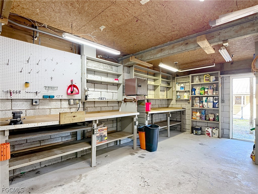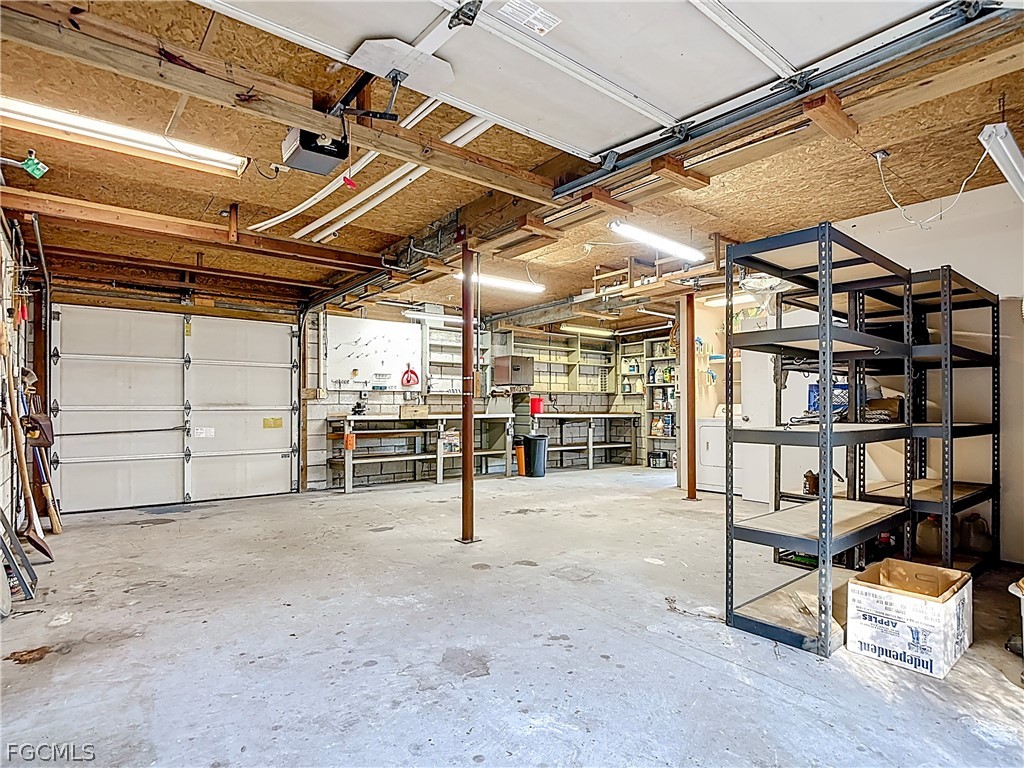 The lower level includes a garage, a workshop with built-in workbench and generous storage for projects, a laundry area, and a second full bath—ideal for boating days and hands-on hobbies.