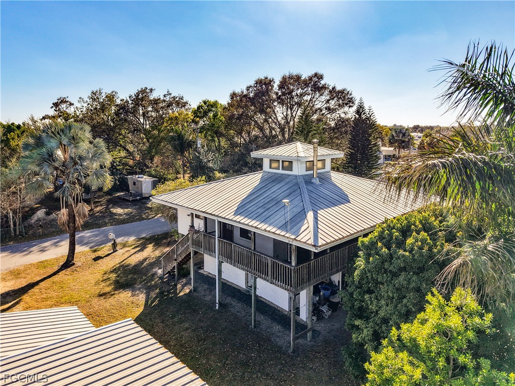 The wood-frame home is elevated on a solid concrete block foundation with concrete pilings and topped with a durable metal galvalume roof. Central air and heat, along with well and septic, support comfortable and efficient living. The upper level offers approximately 1,300+/- square feet, featuring two bedrooms, one bath, a galley kitchen, and a spacious great room for living and dining.