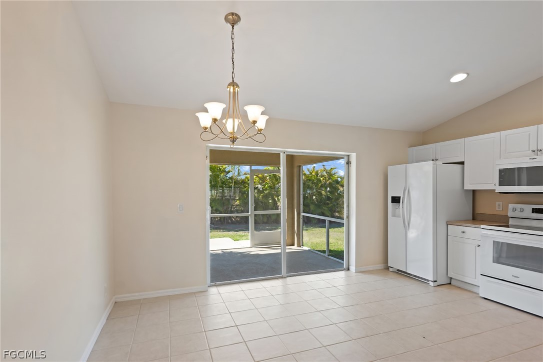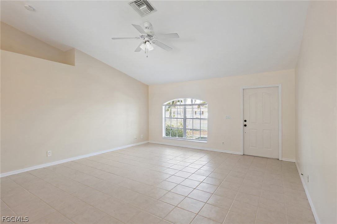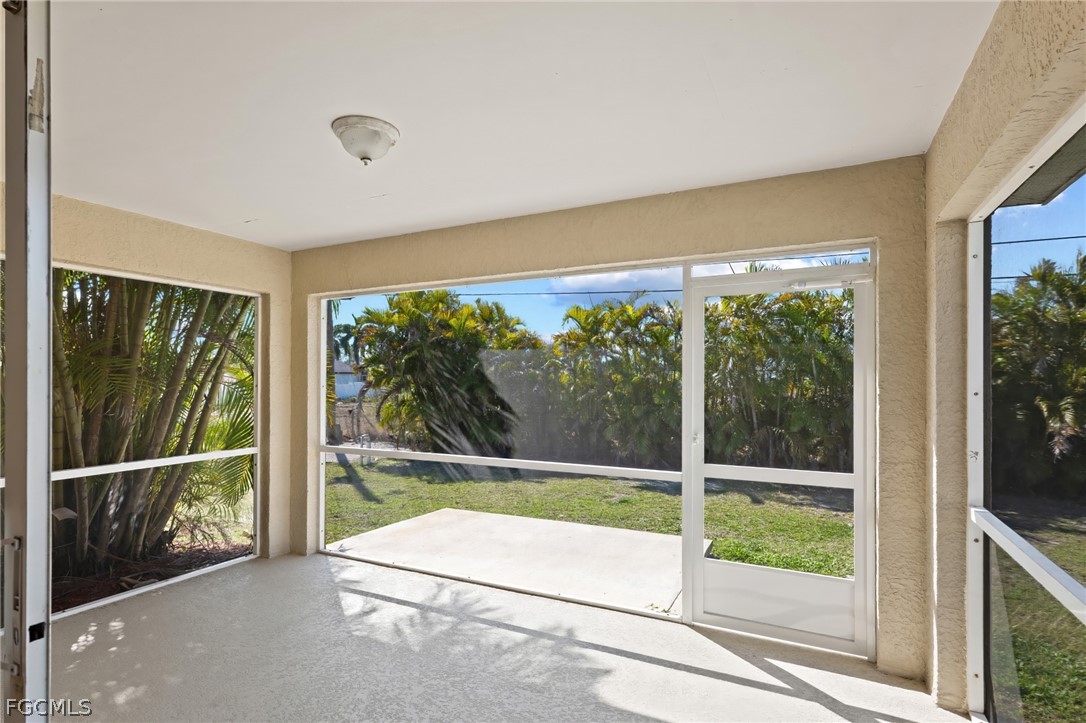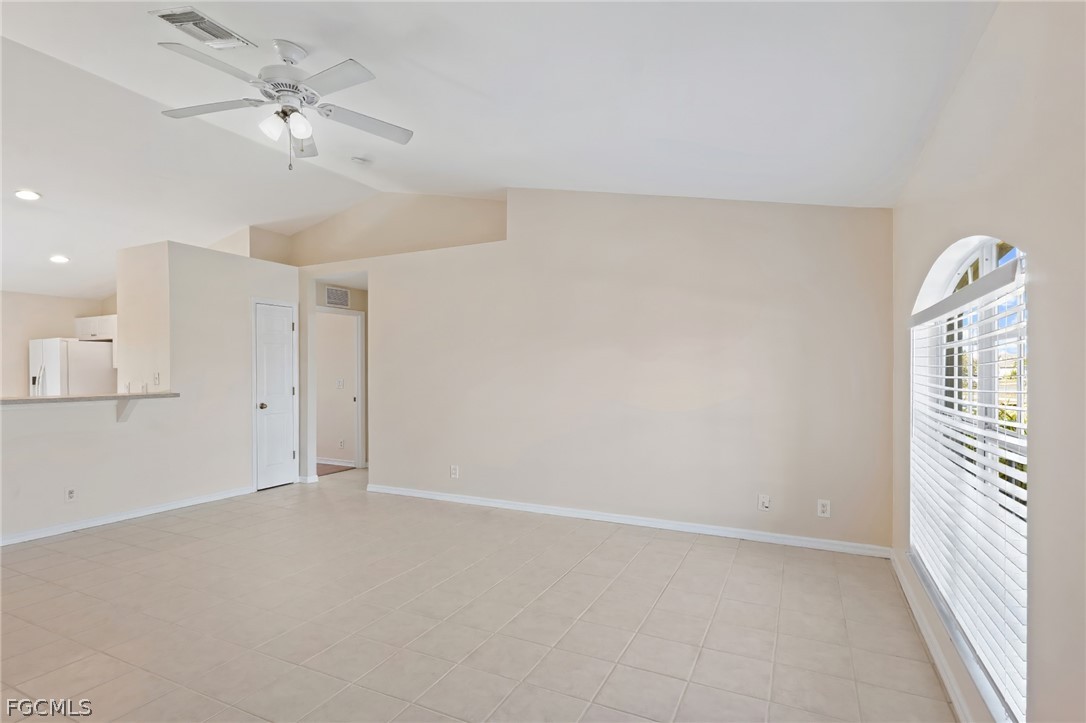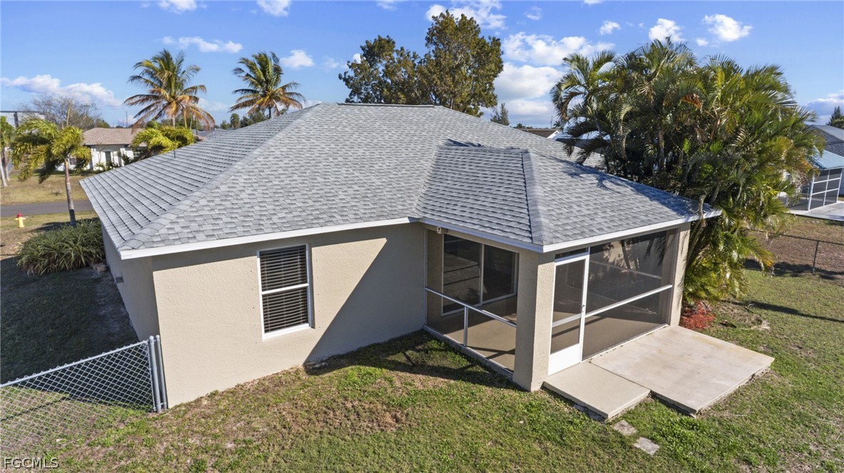 This beautifully updated 3-bedroom, 2-bathroom Cape Coral home features soaring ceilings and a bright, spacious living area that flows seamlessly into the kitchen, complete with a breakfast bar, casual dining space, and new appliances. The generous primary bedroom includes a walk-in closet and an ensuite bathroom with a combined tub and shower, while two additional bedrooms share a full bathroom. Recent updates include fresh paint inside and out, a new roof in 2023, and a new AC system in 2025. The spacious screened lanai overlooks a fenced backyard with no rear neighbors, offering privacy and a relaxing outdoor space. Additional highlights include a 2-car garage and a convenient location close to shopping, dining, and more. Don’t miss the chance to make this move-in ready home yours and enjoy the best of Cape Coral living!