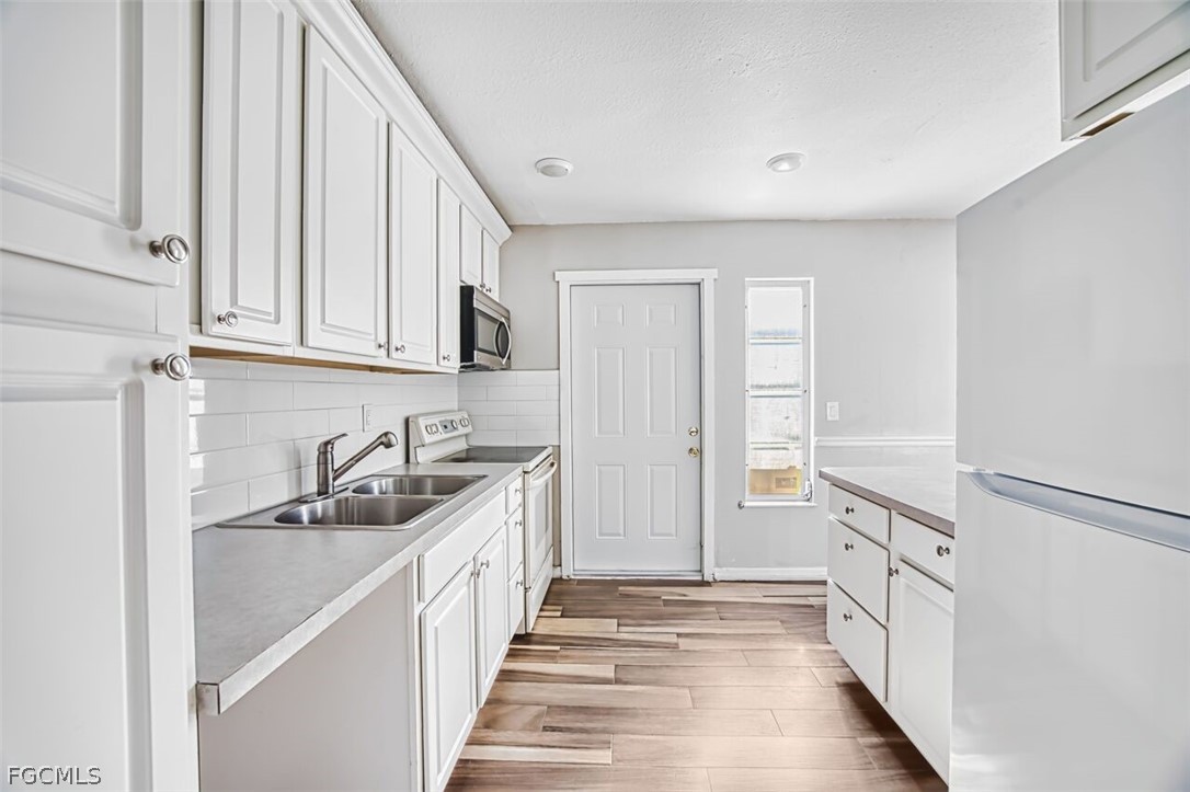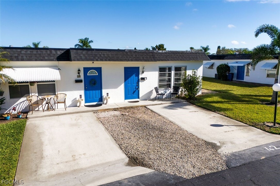Welcome to your slice of paradise in the peaceful 55+ community of Orange Grove Park! This beautifully updated 2-bedroom, 2-bath duplex offers the perfect blend of comfort, convenience, and low-maintenance living in one of the most desirable streets in the neighborhood. Step inside to an inviting open floor plan designed for easy everyday living and entertaining. The spacious living area flows seamlessly into the open kitchen featuring a convenient breakfast bar, ideal for casual dining or hosting friends. Beautiful laminate flooring adds warmth and style throughout the home, while the generously sized bedrooms and tastefully updated bathrooms provide comfort and privacy. Additional highlights include an in-home washer and dryer, along with a relaxing outdoor patio space, perfect for enjoying your morning coffee or unwinding in the Florida sunshine. The extremely low maintenance fee makes this property an affordable option for full-time residents or seasonal homeowners. Ideally located just minutes from Publix Super Market, local restaurants, parks, and Southwest Florida International Airport, you’ll also enjoy quick access to the stunning white sugar-sand beaches of nearby Fort Myers Beach and Sanibel Island. Residents of Orange Grove Park also enjoy a charming community picnic are, an ideal gathering spot for dinner with neighbors, relaxing drinks, or casual community events. Whether you’re searching for a year-round residence or the perfect winter retreat, this home offers comfort, convenience, and the relaxed Florida lifestyle you’ve been dreaming about. Don’t miss this wonderful opportunity to own in one of the best locations within the community!
