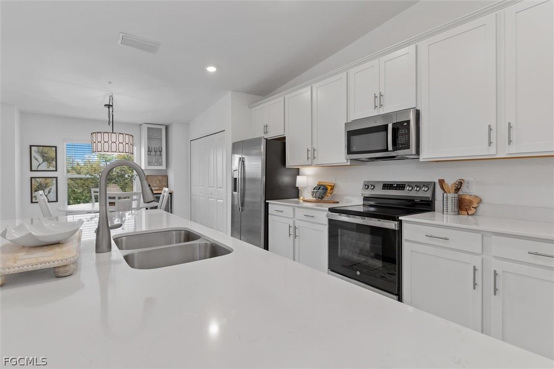 Experience resort-style living in Heritage Landing Golf & Country Club with this beautifully maintained Diangelo II Veranda by Lennar, offering 2 bedrooms, 2 bathrooms plus a versatile den and 1,366 sq ft of living space. Located on the second floor, this light and bright residence features an open-concept layout designed for both comfortable living and entertaining. The spacious kitchen is the centerpiece of the home, featuring quartz countertops, stainless steel appliances, abundant cabinetry, and a large island with seating that flows seamlessly into the dining and living areas. Neutral finishes and tile flooring throughout the main living spaces create a clean, coastal feel. The primary suite offers a peaceful retreat with a walk-in closet and en-suite bathroom featuring dual vanities and a glass-enclosed shower. A comfortable guest bedroom and full guest bath provide privacy for visitors, while the den offers flexible space ideal for a home office, media room, or additional guest accommodations. One of the highlights of the Veranda floor plan is the two screened lanais — a front lanai perfect for enjoying your morning coffee and a rear lanai overlooking tranquil preserve and water views, creating a relaxing outdoor living space. This residence also includes a 1-car garage and is being offered furnished, making it move-in ready. With a Social Membership, residents enjoy access to Heritage Landing’s exceptional amenities including the resort-style pool and spa, clubhouse, fitness center, tennis and pickleball courts, restaurants, tiki bar, and an active social calendar. Conveniently located just a short drive from downtown Punta Gorda, shopping, dining, boating, and the Punta Gorda Airport. Enjoy the ease of low-maintenance, resort-style living in one of Punta Gorda’s most desirable gated communities.