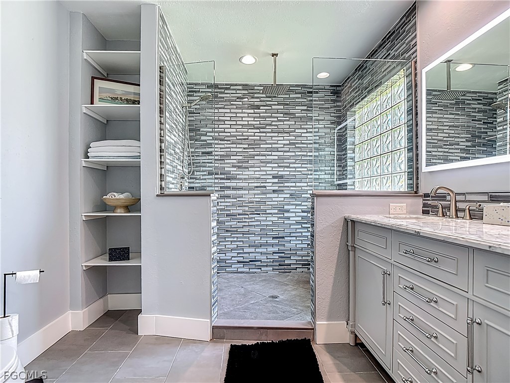 The updated kitchen includes granite countertops, stainless steel appliances, custom cabinetry, tile backsplash, and a cozy breakfast nook. The spacious primary suite offers a walk-in closet and an upgraded bath with dual vanities, granite counter, smart mirror, and a dual-head walk-in shower with bench.
