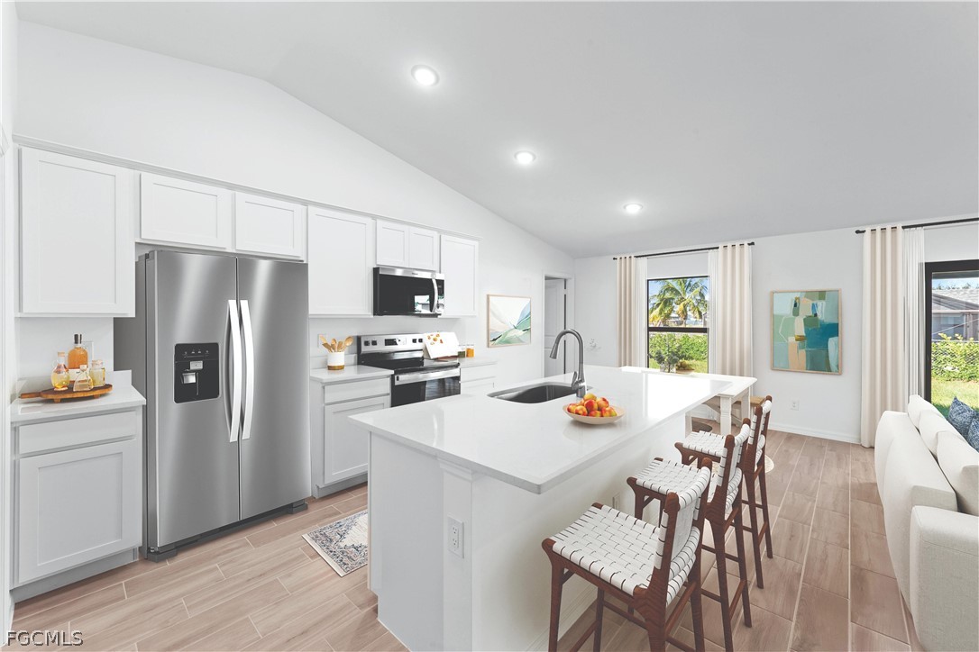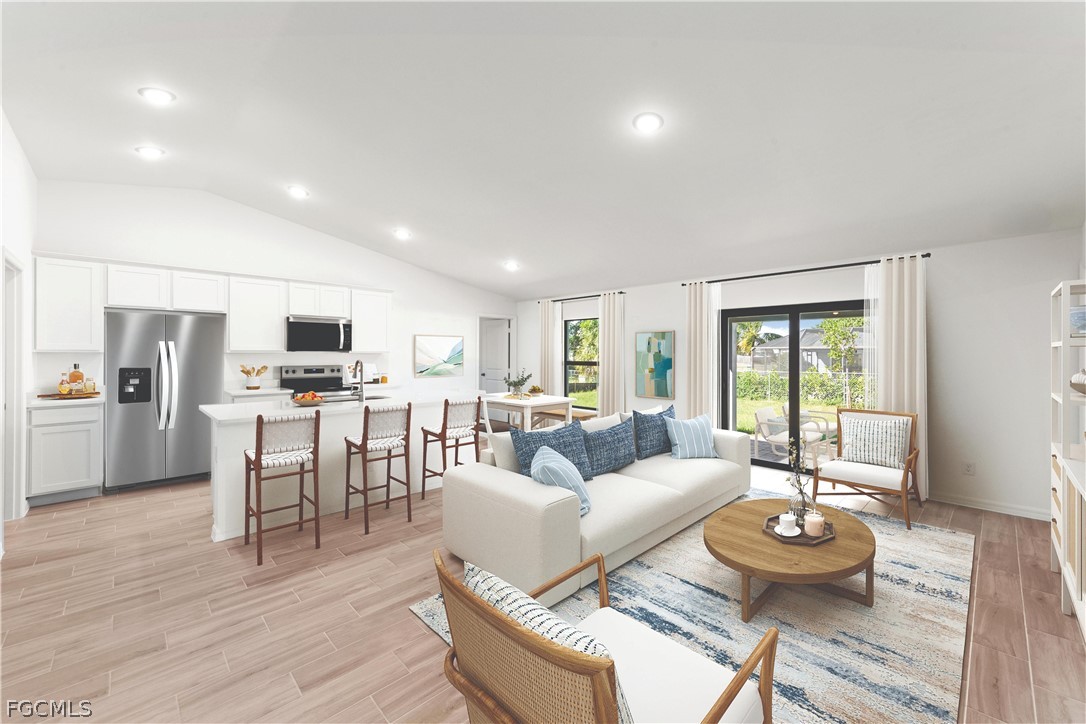 NEW CONSTRUCTION WITH WARRANTY! *Estimated delivery May/June 2026.* The Cayo Costa combines open-concept living with a smart split-bedroom layout, offering three bedrooms plus a den and two bathrooms. Perfectly designed for entertaining, the main living area showcases a soaring vaulted ceiling that seamlessly connects the kitchen, dining area, and expansive Great Room. A large freestanding island provides the ideal centerpiece for both casual meals and social gatherings, while sliding glass doors extend the living space to a covered lanai for effortless indoor-outdoor living. The private Primary Suite is a true retreat, featuring two spacious walk-in closets and a well-appointed en-suite bathroom. On the opposite side of the home, two comfortable guest bedrooms share a full bath, ensuring both privacy and convenience. A versatile den with French doors offers the perfect space for a home office, study, or creative flex room. Highlights of the Cayo Costa include: Quartz countertops in kitchen and baths, designer cabinetry with soft-close doors, stainless steel kitchen appliance package, upgraded plank tile flooring in main living areas, hurricane-impact windows and doors, attached 2-car garage with direct laundry access, and more! Pictures, renderings, & virtual tour are of similar home & are used for display purposes only.
