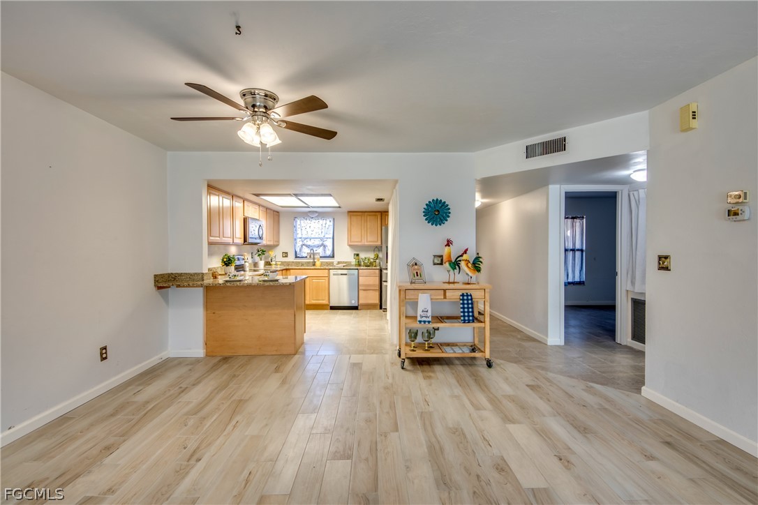 THE SELLER SAYS HE WANTS THIS SOLD NOW and priced accordingly This first floor condominium is a comfortable 2 bedroom 2 bath, with a kitchen that opens into the living and dining room. It has a good size main bedroom with a walk in closet and shower. has a park like setting with docks on a tranquil waterway just outside your screened lanai. Fully renovated with new wood cabinets, new stainless appliances, new flooring, new vanities, its painting is all primed and ready for your decorator touches and furnishings. it’s available for occupancy as soon as you can close! Covered carport is included as well as a storage closet for your golf clubs and bikes and everything you need for Florida living. The location is convenient to I-75 at exit 143 so its quick access to all points both north and south like RSW airport. It is also just minutes to the downtown fort myers arts and entertainment district, Publix is within a mile, and it’s on the Pine Island Rd corridor with all the shopping and restaurants you could want. Other benefits included are a community pool, community boat docks to accommodate a boat up to 24 feet, and a pavilion where they hold neighborhood social activities