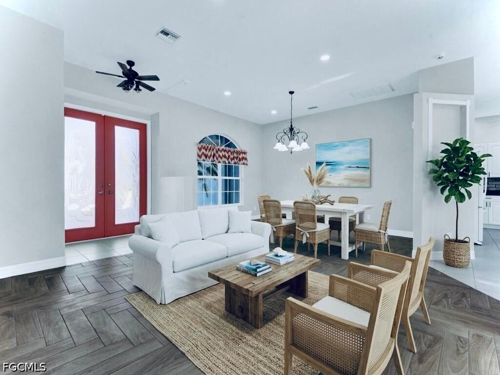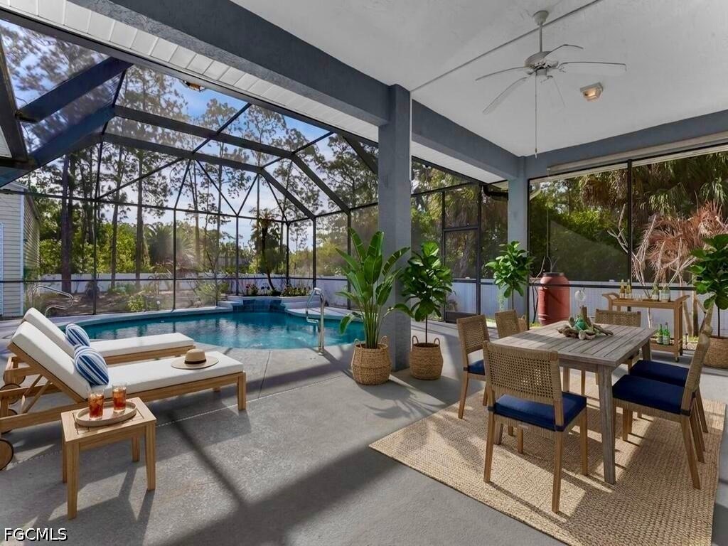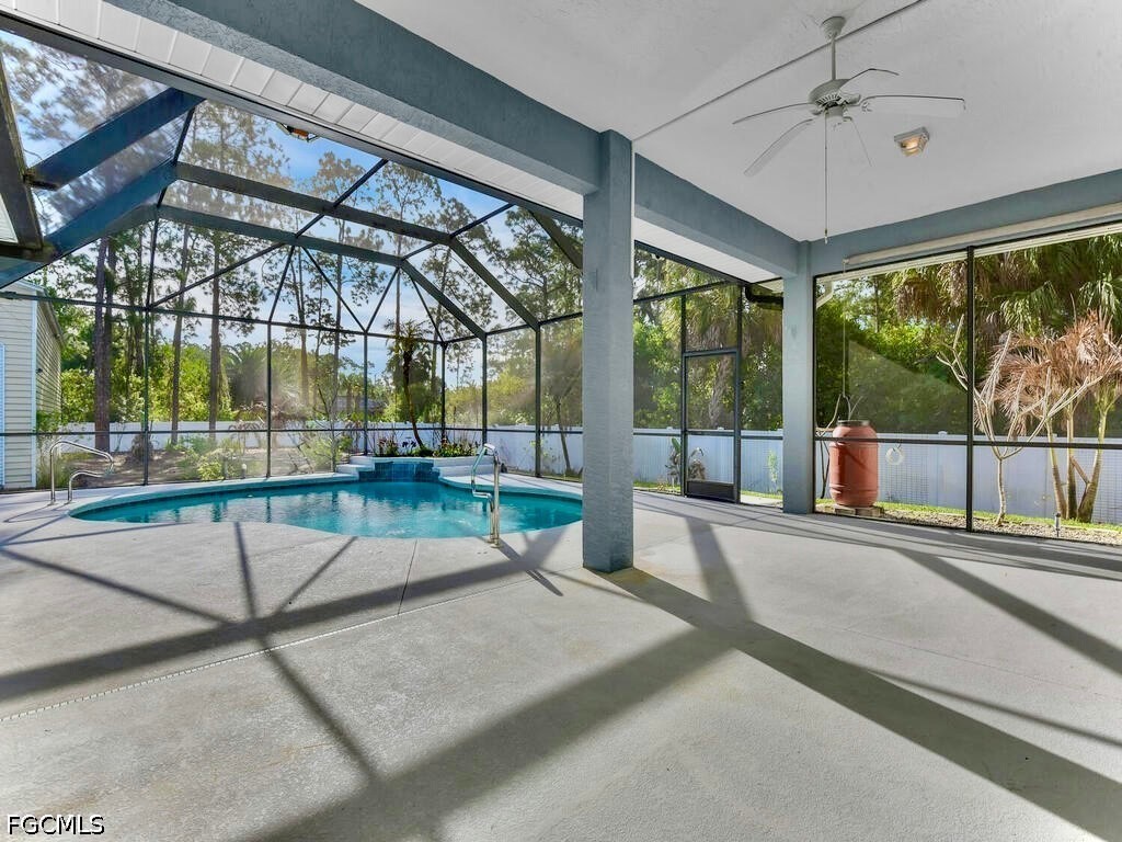 Welcome to the this Magnificent over 2,100 sq ft 3/3 waterfall HEATED POOL home on 6ft fenced half acre with an enormous insulated 30 by 50 DETACHED BUILDING including 12 & 15 ft roll up doors! This property has been freshly painted & nicely landscaped spotlighting GRAND elevations of high ceilings with 8ft pocket sliders & DOUBLE door entrance, refreshing big bay windows, a luxurious LEATHERED granite breakfast bar, and an impressive (2021) METAL roof. This split plan plan with DUAL SUITES also highlights NEW pool heater & water softener system, attractive glass tiled backsplash, recessed & pendant lighting, a desirable jetted soaking tub, instant hot faucets, rewarding dual sink vanity, and a massive WALK-IN closet. It is tiled throughout & also features new wood plank tile, an oversized 2 car garage, whole house gutters, tiled walk-in shower, video security system, plant shelving, an accommodating back patio under trust, pantry, faux blinds, Fruit trees, and the laundry room is under with vanity sink & storage cabinets. It is nestled away on a quiet street just minutes to all major amenities & a quick commute to Fort Myers. Schedule your private showing today!