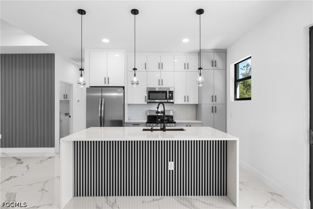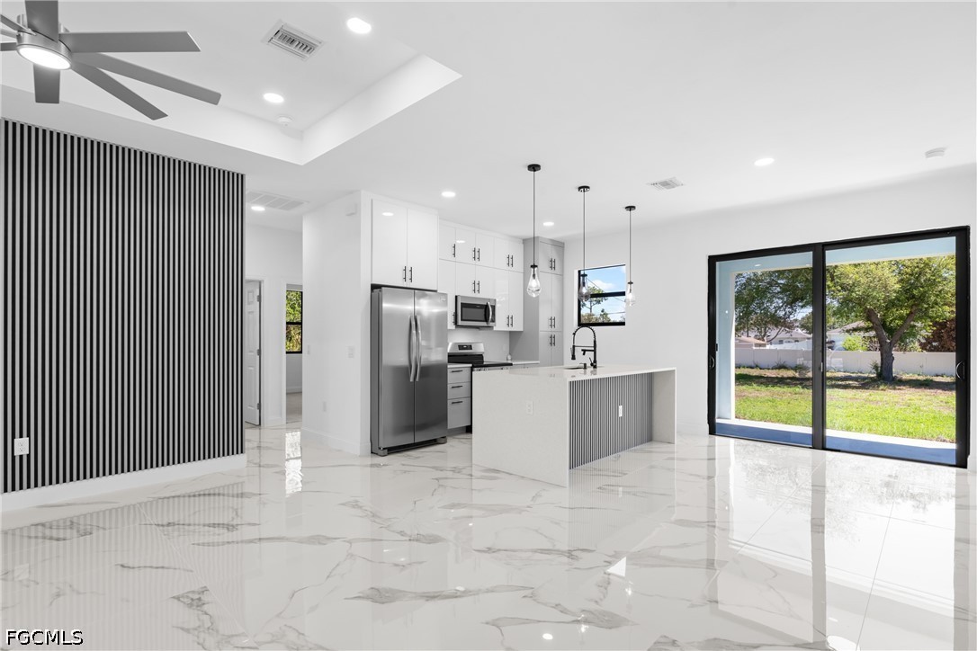 Brand new 2026 construction on an oversized half-acre lot in Lehigh Acres! This stunning single-family home offers 3 bedrooms plus a den, 2 full baths and 1 half bath across 2,228 sq ft of thoughtfully designed living space. Featuring impact-resistant windows and doors for full storm protection. Open great room floor plan with split bedrooms, tile and carpet flooring, built-in cabinets, and walk-in closet. Kitchen boasts a breakfast bar and quality finishes. All new roof, electrical, plumbing, and HVAC systems. Public water service and private septic. Oversized lot offers plenty of room to add a pool and create your dream outdoor oasis. No HOA fees, no restrictions. Not in a flood zone, and it's move-in ready.