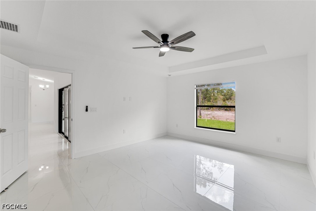 4 bedroom 2 bath 2 CAR Garage -with epoxy floors new construction home in Lehigh Acres Florida. plenty of space for the whole family. The separate dinning and living rooms can also be used as flex spaces. The vaulted ceilings, hurricane rated windows and doors and extra large garage on this half acre lot set this home apart from the others. Primary bedroom is 14 X 17 and has two walk in closets the bathroom has separate tub and shower and two sinks. A split floor plan offers 2 bedrooms that share a bathroom and another bedroom. Great room is ready for a large TV with a wood feature accent wall. Kitchen has all stainless appliances, a large granite island and a nice sized dinning area for your everyday meals. Formal dining room off the kitchen.