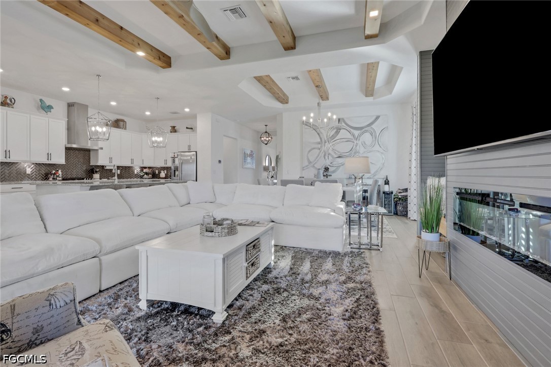 Featuring 3 spacious bedrooms, 3 full bathrooms, plus a versatile den, this home showcases thoughtful design and upscale finishes throughout. Gorgeous custom built-ins, designer wood beam accents, and a timeless neutral palette create a warm yet sophisticated ambiance.