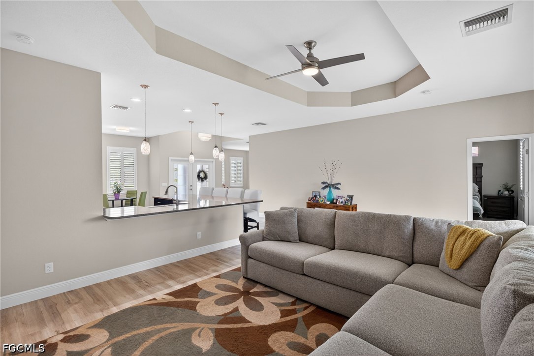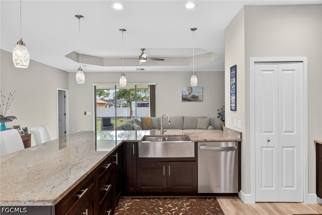 Inside, a bright and expansive open-concept design welcomes you with tray ceilings, recessed lighting, and seamless indoor living spaces designed for both everyday comfort and effortless entertaining. The chef-inspired kitchen anchors the home, featuring a grand center island, generous prep space, and an ideal flow into the main living and dining areas.