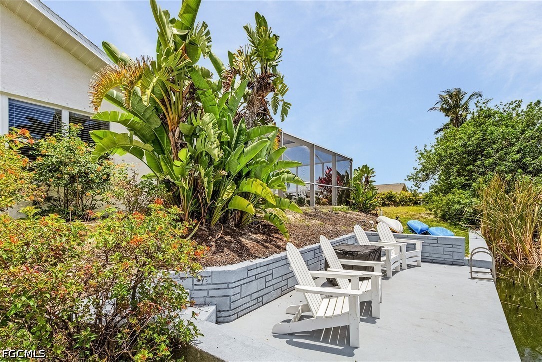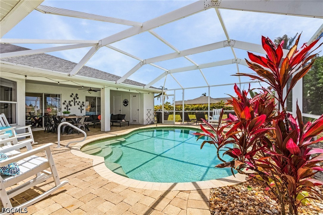 The outdoor living area is designed for both relaxation and entertaining, featuring a screened-in, heated pool, an expansive lanai ideal for unwinding, and a convenient pool bath for added functionality, making it easy to host gatherings or enjoy quiet evenings outdoors.