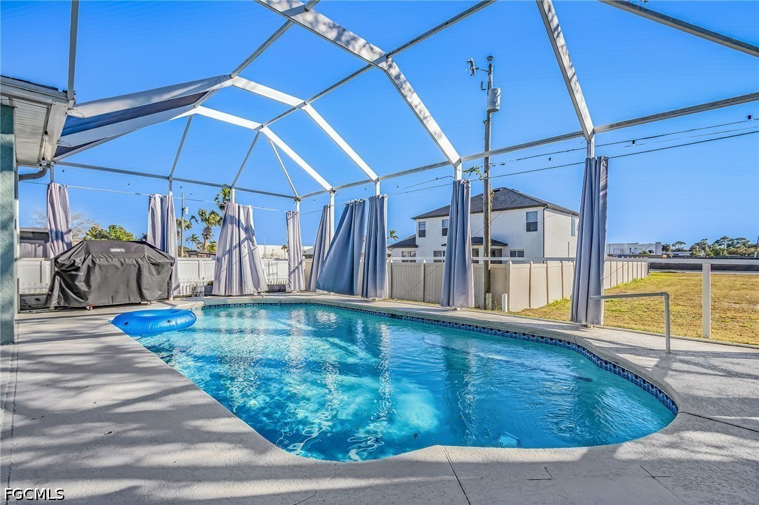 Welcome to this beautifully maintained two-story ranch-style pool home, this home sits right in the heart of Cape Coral's hottest retail boom- surrounded by a fresh wave of restaurants and shops, from cozy spots like Stones Throw to new favorites like Tacos and Tequilla Cantina. Super convenient with quick access to I75, downtown Ft. Myers and 30 minutes to RSW international AIRPORT!!!! This home is less than 3 miles from a highly regarded K-8 school. Features include 3 bedrooms, 2.5 bathrooms, and a versatile den/loft that can easily be converted into a 4th bedroom. The spacious gourmet kitchen is a chef’s delight, showcasing 42" wood raised-panel cabinetry, an oversized island, stainless steel appliances, plenty of counter space and a walk-in pantry. The home offers a large open living room, formal dining room, and an eat-in kitchen—perfect for both everyday living and entertaining. The expansive primary suite is filled with natural light and boasts an enormous walk-in closet. The en-suite features a solid wood vanity, oversized garden tub, and a walk-in shower. All secondary bedrooms are generously sized and include walk-in closets. Step outside to your private lanai and enjoy your morning coffee, take a refreshing swim in the pool, or unwind in the hot tub after a long day—ideal for outdoor entertaining. Nature lovers will appreciate easy access to the 4-mile Del Prado Linear Park, featuring fishing ponds, picnic areas, and scenic paths for walking, jogging, or biking. Recent updates include a new metal roof (2023), new hot water heater (2025), new pool pump (2025), and a new garage door opener (2025). This home truly offers comfort, convenience, and an exceptional Florida lifestyle. All information deemed reliable but not guaranteed, buyers to do due diligence.