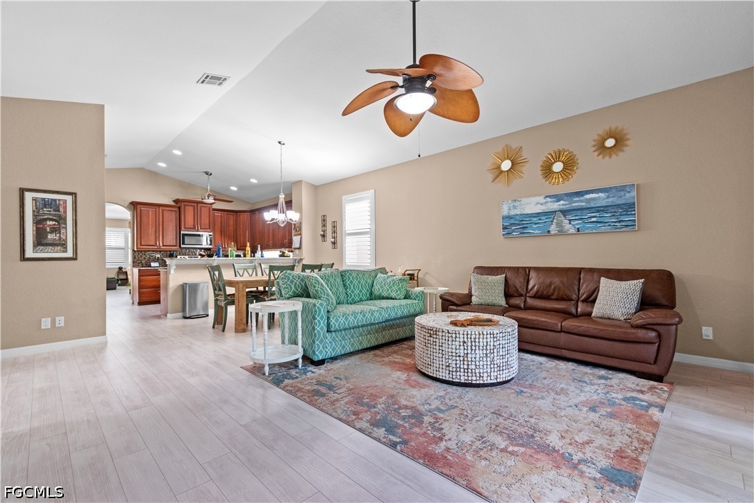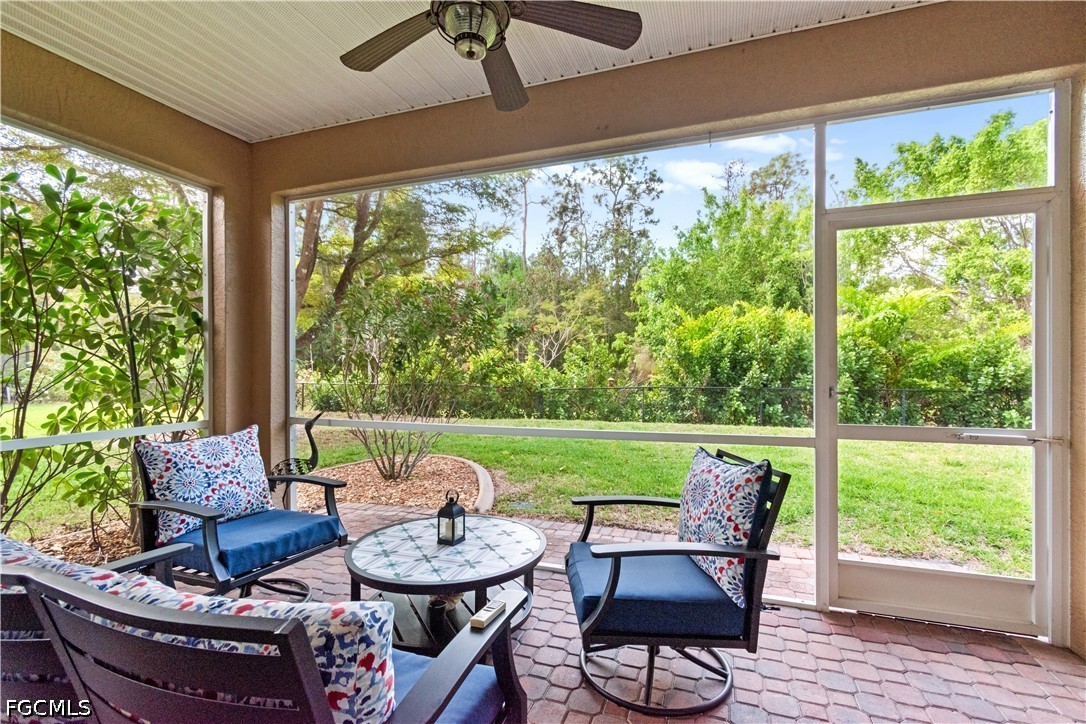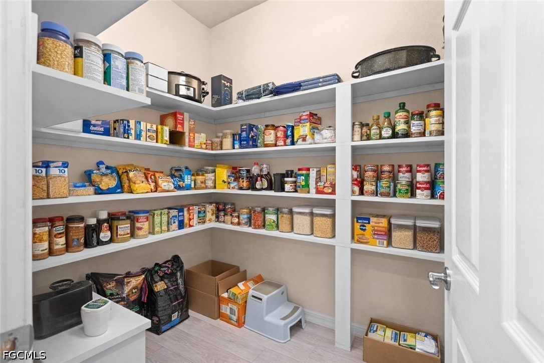 Tucked inside the gated community of Plantation Preserve, this beautifully maintained home sits outside flood zones, a detail that's as valuable as it is rare in Southwest Florida. The curb appeal sets the tone immediately: a paver driveway, new tile roof, new gutters, soffits, and fascia, all dressed up and ready for decades of Florida weather. Step inside and the vaulted ceilings add height and light to every main living area. The kitchen is the kind you actually want to cook in, granite counters, stained wood cabinetry, and a walk-in pantry large enough to finally organize your life. The great room flows with warm laminate flooring and gives you the kind of everyday living space that actually gets used, while a separate front living room offers the perfect flex space, a home office, formal sitting room, or that reading nook you've always promised yourself. Plantation shutters add a classic Florida touch. The primary suite is genuinely sizeable, with a walk-in closet that handles your wardrobe and an en suite bath featuring dual sinks, a walk-in shower, and a separate soaking tub — functional, solid, and full of potential for the buyer who wants to add their own touch down the road. Three additional bedrooms give you room to grow, host, or spread out, all with carpet for that cozy, quiet feel. The dedicated laundry room comes fully loaded with a new washer and dryer plus extra storage cabinets, because adulting should at least be convenient. Your lanai opens to a lush, peaceful backyard that feels completely tucked away from the world, the kind of outdoor space that turns a Sunday morning into something worth savoring. The garage comes with overhead storage racks, and the HOA at just $195/month covers lawn care and access to the community pool. Sidewalks throughout the neighborhood make evening walks genuinely enjoyable. Plantation Preserve is conveniently located in the heart of South Fort Myers, putting the Daniels Corridor, US-41, and I-75 minutes away — and everything else you love about Southwest Florida well within reach: dining, shopping, RSW, spring training, the downtown River District, and those legendary white-sand Gulf beaches. This is the one you come back to see twice. PID 07-45-25-11-00000.0520