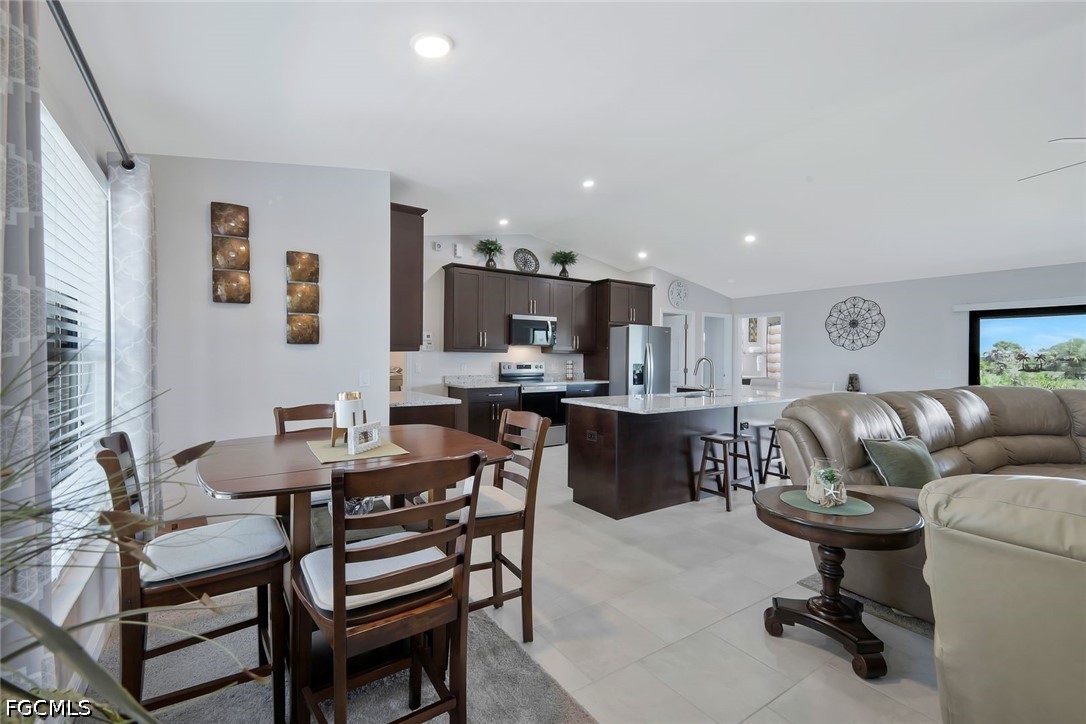 Welcome to this beautifully crafted newer construction home on a wide freshwater canal in the rapidly growing Northeast Cape Coral area. Offering 3 bedrooms, 2 bathrooms, and over 1,700 sq ft under air, this home combines modern design with everyday functionality. Step inside to an open-concept layout featuring 18-inch tile throughout the main living areas, creating a clean and cohesive feel. The kitchen is designed to impress with granite countertops, soft-close cabinetry, and a full suite of Whirlpool appliances. The split-bedroom floor plan provides privacy, while the spacious owner’s suite serves as a true retreat. Enjoy a large walk-in closet and a spa-like bathroom complete with an oversized walk-in shower. Additional highlights include carpeted bedrooms for comfort, ample natural light, and a layout that maximizes space and flow. Upgraded with Spray Polyurethane Foam Insulation for next-level energy efficiency, a quieter interior, and cleaner air year-round. Enjoy true indoor-outdoor living with a large screened-in lanai overlooking the canal—ideal for relaxing, entertaining, or enjoying peaceful water views year-round. The backyard offers plenty of room to add a pool or customize your outdoor space to fit your lifestyle. NO FLOOD ZONE! Freshwater canals are perfect for kayaking, fishing, and taking in the natural surroundings. Convenient access to shopping, dining, parks, and hiking. Enjoy all that SWFL has to offer!