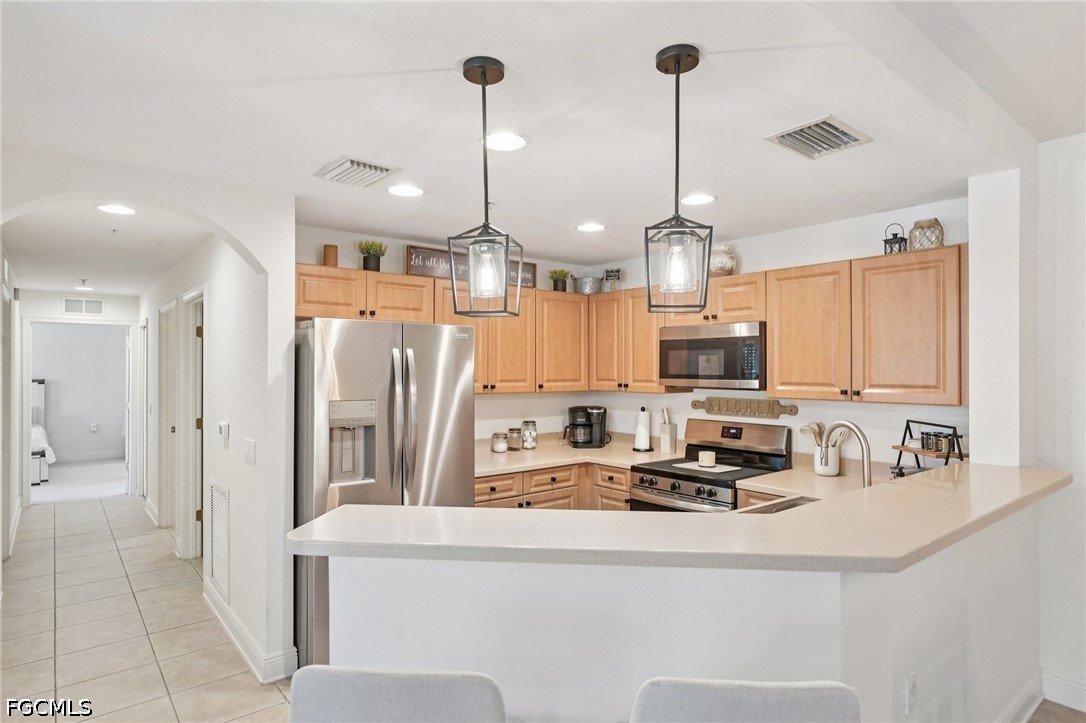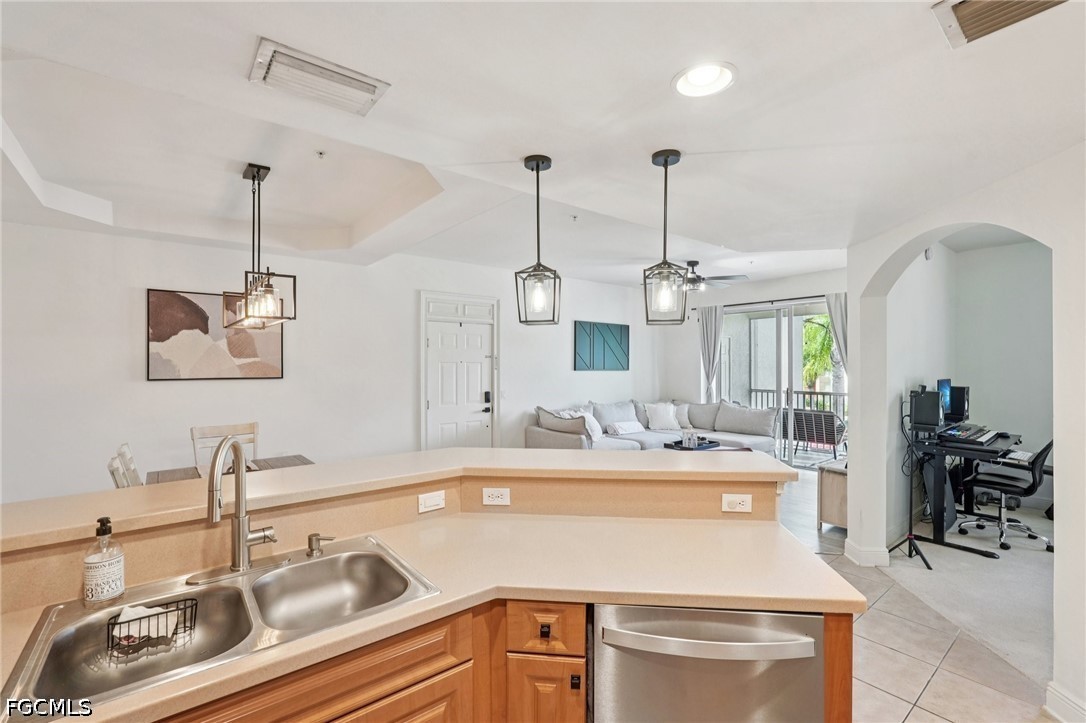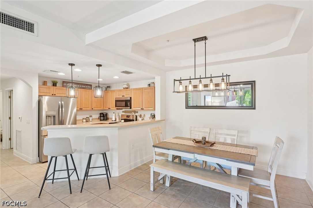 Welcome to easy, low-maintenance Florida living in this beautifully appointed second-floor condo featuring 2 bedrooms, a versatile den, and 2 full baths. A 1-car garage adds convenience and extra storage, while the open, inviting layout creates a comfortable flow perfect for both everyday living and entertaining. The kitchen is enhanced with stainless steel appliances and upgraded lighting, adding a modern touch throughout the main living spaces. Enjoy your morning coffee or unwind in the evening on the private screened balcony, offering a relaxing outdoor space.