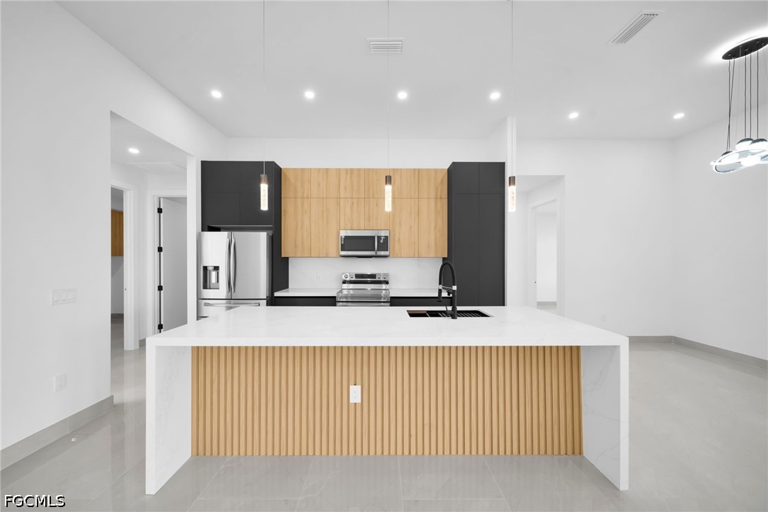 Located in a prime area of Cape Coral in Gleason Parkway, this beautifully designed home offers 1,949 sq ft of living area with 4 bedrooms and 4 bathrooms. The interior features tile flooring throughout and luxury finishes, creating a modern and elegant living space. The open floor plan provides comfortable living and entertaining areas, while the freshwater canal location offers peaceful water views and added privacy. Conveniently located close to shopping, dining, and everyday amenities. Great opportunity to own a stylish waterfront home in a highly desirable Cape Coral location.