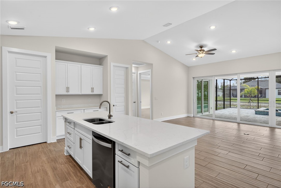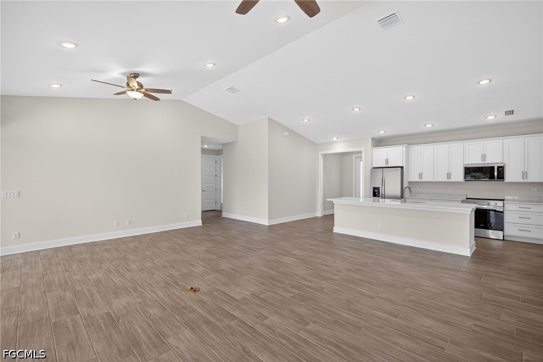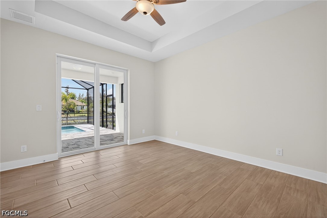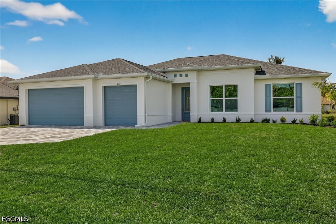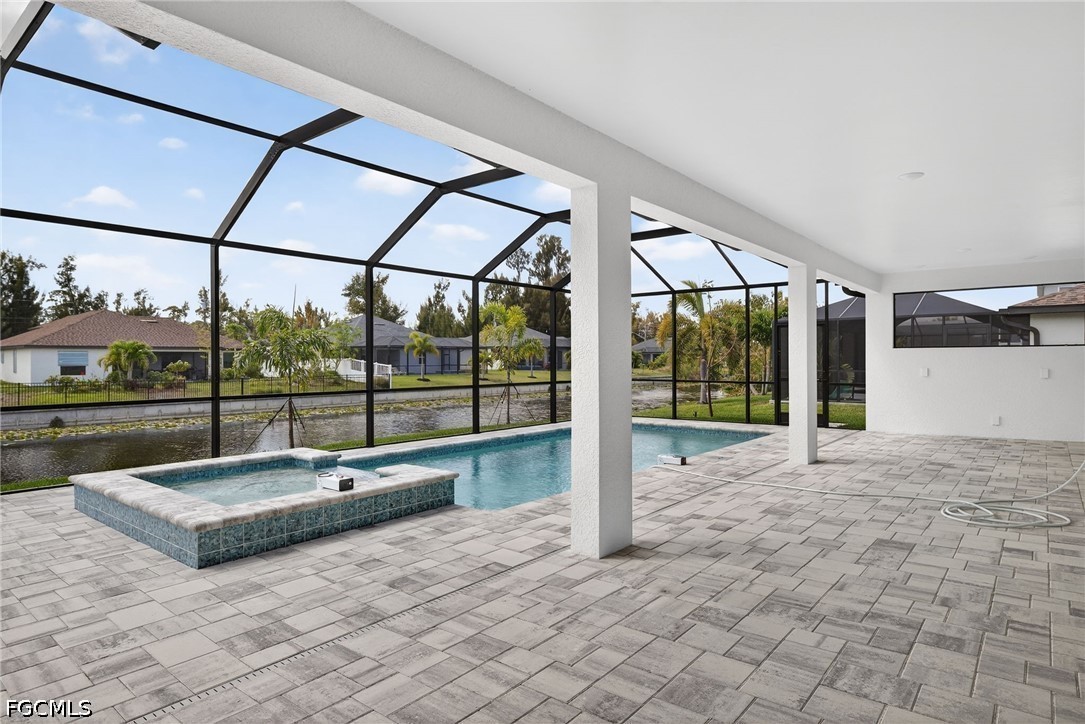 MOVE IN READY NEW CONSTRUCTION! 24-FOOT SLIDING GLASS DOOR WITH STUNNING SUNSET VIEWS OVER A WIDE FRESHWATER CANAL! Welcome to the Coral Haven Plan, where luxury design and waterfront living meet in perfect harmony. Designed exclusively for premier waterfront homesites, this expansive residence captures the essence of the Florida Sunlife lifestyle with a seamless indoor-outdoor connection that truly sets it apart. A dramatic 24-foot-wide sliding glass door opens to an enormous screened lanai featuring a heated pool and spa, offering the perfect balance of shaded relaxation and sun-drenched lounging while overlooking tranquil water views—ideal for entertaining or unwinding in true resort style. From the moment you arrive, exceptional attention to detail is evident, from the pristine paver driveway to the elegant finishes throughout. Inside, natural light pours across gleaming porcelain tile floors and up to soaring ceilings accented with detailed crown molding. The modern kitchen is a true showpiece, showcasing stainless steel appliances, all-wood soft-close cabinetry, quartz countertops, a large island with breakfast bar, and a spacious walk-in pantry—perfect for both everyday living and hosting in style. The thoughtfully designed split floor plan offers outstanding flexibility for multi-generational living, remote work, or growing families. Two luxurious primary suites each feature tray ceilings, walk-in closets, and full en-suite bathrooms, providing comfort and privacy for all. The location is ideal with close proximity to everything Cape Coral offers. With impact windows and a no flood zone location, this home offers peace of mind and extremely reasonable insurance costs. Blending sophistication, functionality, and an unbeatable waterfront setting, this residence delivers the ultimate Florida lifestyle. One or more photo(s) was virtually staged. This is the Coral Haven Plan.
