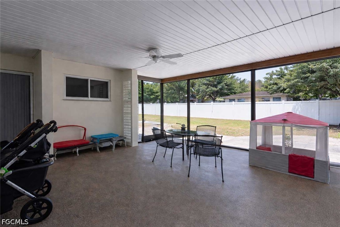 Spacious, inviting, and full of character, this 4-bedroom, 3-bath home in Fort Myers Villas offers 2,922 square feet of living space designed for comfortable everyday living and gathering with family and friends. From the moment you walk in, you’re welcomed by soaring ceilings with wood beam accents, an open and airy layout, and an abundance of natural light that gives the home a warm, relaxed feel. The oversized living areas provide plenty of room to spread out, while the expansive farmhouse-style kitchen, complete with generous counter space and a large island, becomes the heart of the home… perfect for those who love to cook, entertain, or simply spend time together. The layout also offers flexibility for multi-generational living, with a private bedroom and bath that can function as an in-law suite or guest space, complete with its own entrance. Additional bedrooms are well-sized and versatile, ideal for family, guests, or home office needs. Step outside to a large screened lanai and fully fenced backyard with an extended patio area… offering plenty of space for outdoor living, play, or future enhancements. Impact windows are in place throughout much of the home, adding to its overall value and peace of mind. Thoughtfully maintained with numerous updates throughout, this home blends character, space, and functionality in a way that’s hard to find. Located in the heart of Fort Myers, just off US-41, you’re approximately 20 minutes to RSW International Airport, Fort Myers Beach, and Sanibel, with easy access to shopping, dining, and the River District of downtown Fort Myers. Set within the established Villas community known for its long-time residents and central location, you’ll enjoy a laid-back neighborhood feel with nearby parks, local gatherings, and easy access to everything Southwest Florida has to offer.