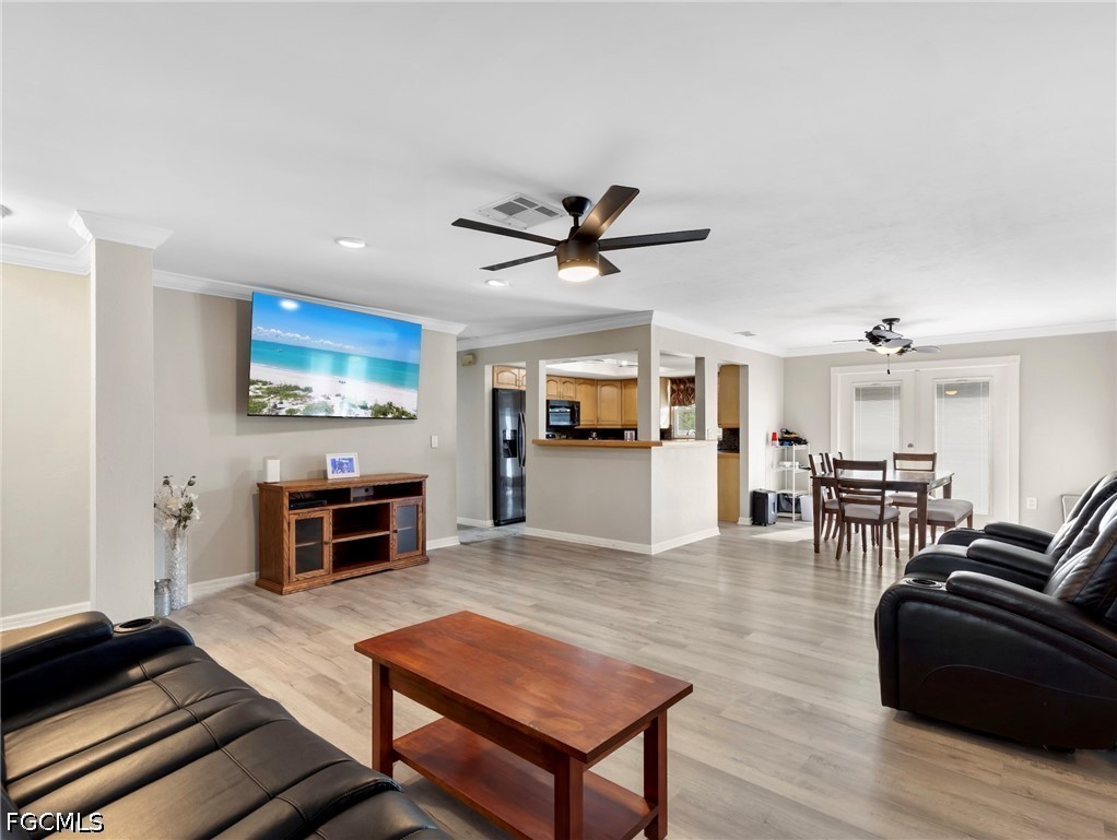 Beautifully located in the heart of South Fort Myers, this 3 bedroom, 2 bath pool home sits in the desirable Fort Myers Villas community. Features include updated LV flooring, crown molding, a spacious split-bedroom layout, and a large great room ideal for everyday living and entertaining. Enjoy one of the most expansive private fenced backyards in the neighborhood, complete with a resurfaced pool and newly expanded tile deck. Additional upgrades include a 2022 metal roof. No HOA fees. The property backs up to the John Yarborough Linear Park, offering added privacy and the assurance of no future rear construction. Move-in ready and perfectly situated close to shopping, dining, and beaches. You are now HOME!