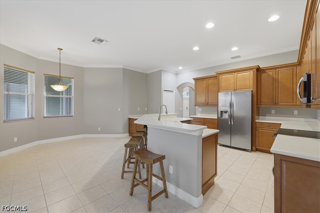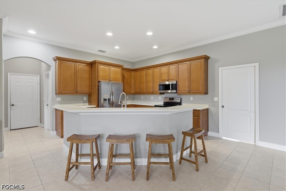 Welcome to this beautifully maintained estate home located in the desirable community of Stoneybrook at Gateway. Situated on a quiet cul-de-sac, this residence offers a split floorplan that is bright, open layout with generous living spaces and a comfortable flow ideal for everyday living and entertaining. The huge kitchen features ample cabinetry, a breakfast bar, and a spacious dining area overlooking the backyard. The primary suite provides a peaceful retreat with a walk-in closet and an en-suite bath. Additional highlights include a new roof in 2025, new AC 2024, new exterior paint in 2025, tile flooring in main living areas, well-appointed guest rooms, three car garage and a screened lanai perfect for enjoying Florida’s outdoor lifestyle. Stoneybrook is a gated, amenity-rich community offering a resort-style pool, fitness center, clubhouse, pickleball, tennis, basketball, and miles of walking paths. Conveniently located near RSW Airport, shopping, dining, and the Gateway Charter schools. Move-in ready and easy to show—this home is a must-see. Some pictures are virtually staged.