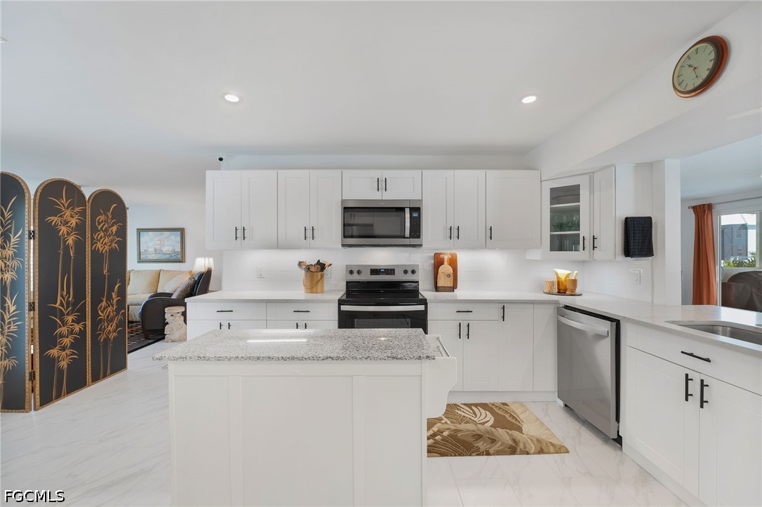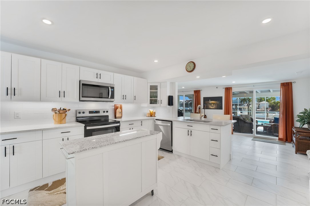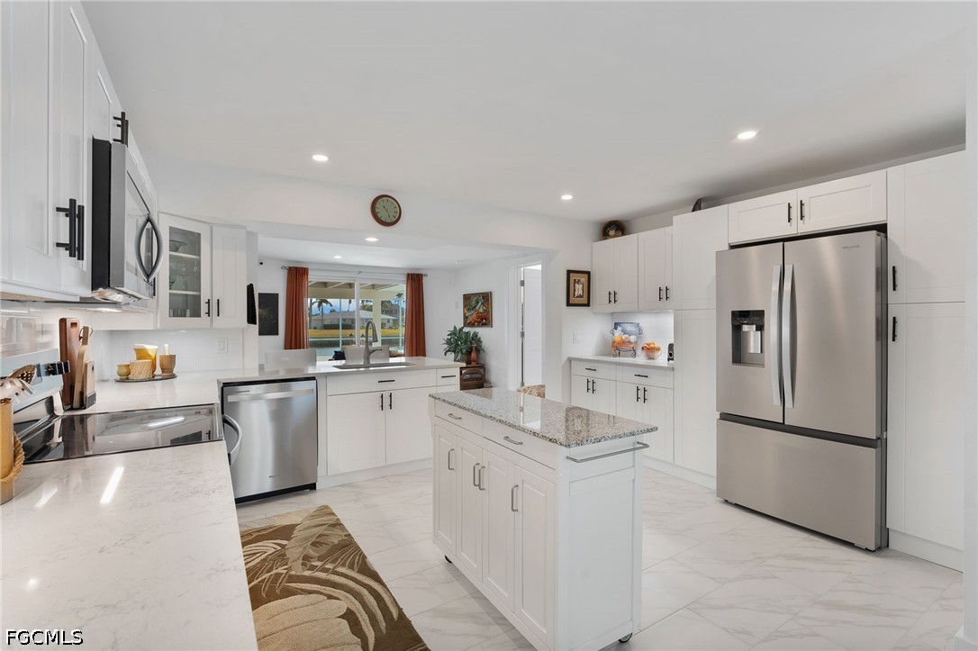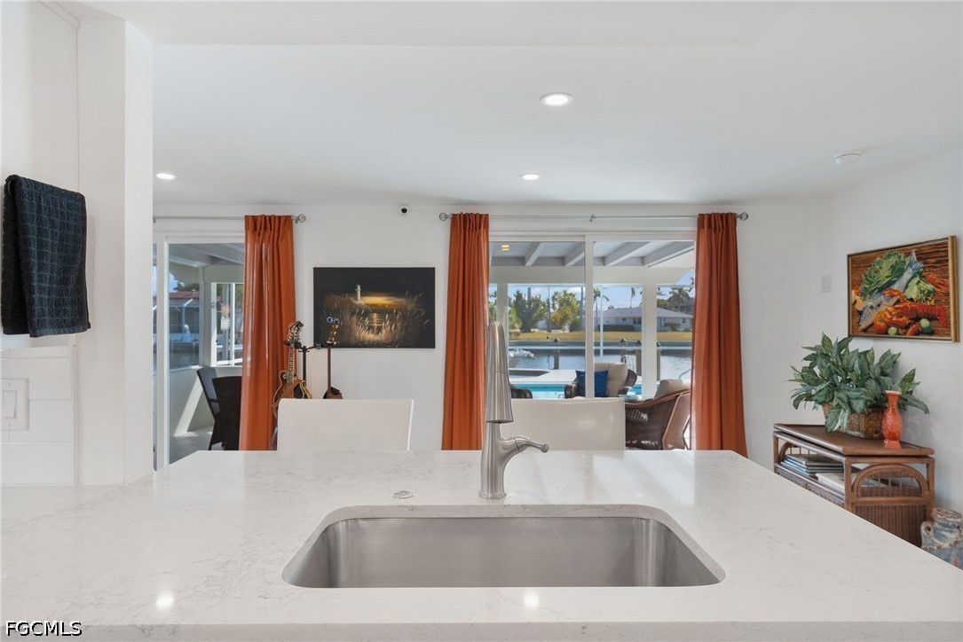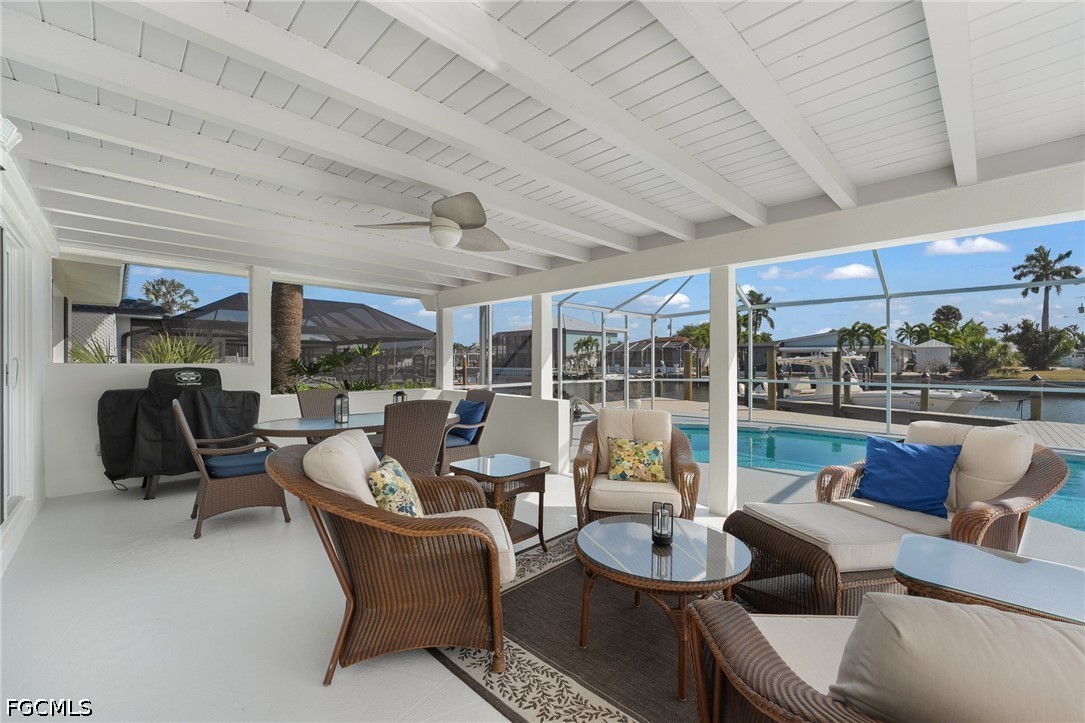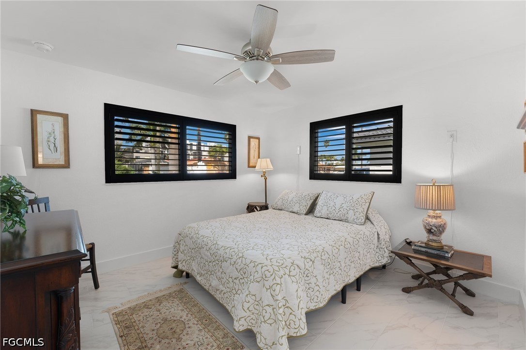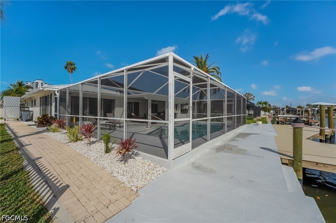This home is COMPLETELY NEW inside displaying elegant, luxurious, coastal style. This waterfront concrete block home has no stairs so you can drive up, walk in and begin enjoying the island beach lifestyle. The newly installed underground irrigation system maintains the lush tropical landscaping that surrounds the property. Multiple security cameras on the property will stay with the home. Bright and spacious living area opens up to a large lanai overlooking the heated in-ground pool, and the new composite, maintenance free deck and boat dock with power, water and a new fish cleaning station. The large white porcelain faux-marble flooring gives the home a luxurious feeling. The kitchen offers beautiful cabinetry, quartz countertops with a convenient rolling center island. Please view the video link for a virtual tour. Arriving home after a nice boat trip or a walk down the beach you can relax and cool off in the gorgeous swimming pool. The private, enclosed patio is adjacent to the pool and deck and is beautiful in the daytime and magical at night. Dolphins and manatees are a frequent delight, swimming right up to the dock. This property is situated on intersecting canals and offers expansive long water views. Take your boat less than half a mile and you will find yourself in Estero Bay with unparalleled backwater fishing opportunities. By boat, this home is 2.5 miles to the Gulf, Lover's Key State Park and Dog Beach. For the beach lovers, this spectacular home is less than 500 steps from the sugar white sand beach that we are so famous for. The highly desirable Fairview Isles area of Fort Myers Beach is very close to Publix, CVS, 7-Eleven, Santini Plaza, Fish Tale Marina, popular shopping, restaurants, and coffee shops. The South-end location also allows quick and easy traffic-free access to Bonita Beach, Naples and the Southwest Florida International Airport. Don't forget to watch the virtual tour video. Welcome to your new Fort Myers Beach home.