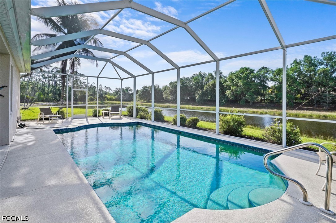 Very well-maintained Rainford model, large Executive home with full golf membership in Legends Golf and Country Club. The Rainford is a three bedroom plus den/fourth bedroom great room floor plan. Being offered turnkey furnished in a light Floridian fashion. The kitchen cabinets have been updated, new stainless steel appliances just installed, both bathrooms were completely remodeled and the pool enclosure is newer and the pool heater is just a year old. This home with its warm and sunny interior is ideal for entertaining family and friends. What sets this property apart from all others is location, location! Situated on a quiet cul-de-sac, on an oversized pie-shaped lot, backing on a lake, all these factors result in exceptional privacy for this home. Legends Golf & Country Club is a beautiful guard gated Country Club that offers Championship golf, grand slam tennis, pickleball, a 35,000 square foot clubhouse with 3 restaurants, an amazing resort style pool with waterfall and spa, fitness center with free classes, tons of planned activities such as concerts, dances, card games and much more. Golf members pay no additional fees for carts or greens fees. Located conveniently in S. Ft. Myers close to shopping, restaurants, the airport and to the beaches or baseball games. Professional photos coming soon.