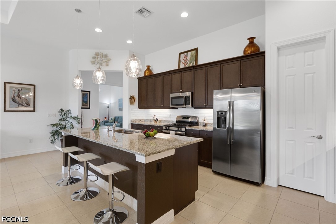 Welcome to Verandah! Located in the desirable Willow Ridge subdivision, this beautifully maintained Kolter-built single-family home immediately impresses with its soaring ceilings and bright, open living space—creating an airy feel that lives much larger than its footprint. Meticulously cared for by seasonal owners, the home shows in truly pristine condition, with immaculate tile flooring throughout and no carpet anywhere. This thoughtfully designed Largo floor plan features 2 bedrooms plus a spacious den that could easily function as a third bedroom—perfect for guests, a home office, or additional flex space. The open-concept layout flows seamlessly into a well-appointed kitchen with granite countertops, gas stove, GE stainless steel appliances, and rich dark cabinetry. Built in 2017, the home offers modern finishes and tasteful window treatments throughout. The primary suite is generously sized and includes dual vanities, a large walk-in shower, and an oversized walk-in closet. Step outside to an expansive lanai with hookups already in place for an outdoor kitchen—ideal for enjoying Southwest Florida evenings. The backyard offers a peaceful water view with plenty of room to add a pool. Additional highlights include a two-car garage, manual hurricane shutters, and a non-flood zone location for added peace of mind. A fantastic opportunity to enjoy life in one of Fort Myers’ premier communities. Residents of Verandah enjoy two championship golf courses, tennis, pickleball, bocce, a fitness center, community pool, dog park, kayaking on the Orange River, and more than nine miles of scenic walking and biking trails, all just minutes from Downtown Fort Myers and the Caloosahatchee River.