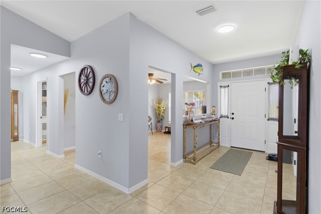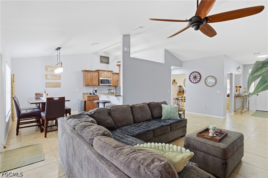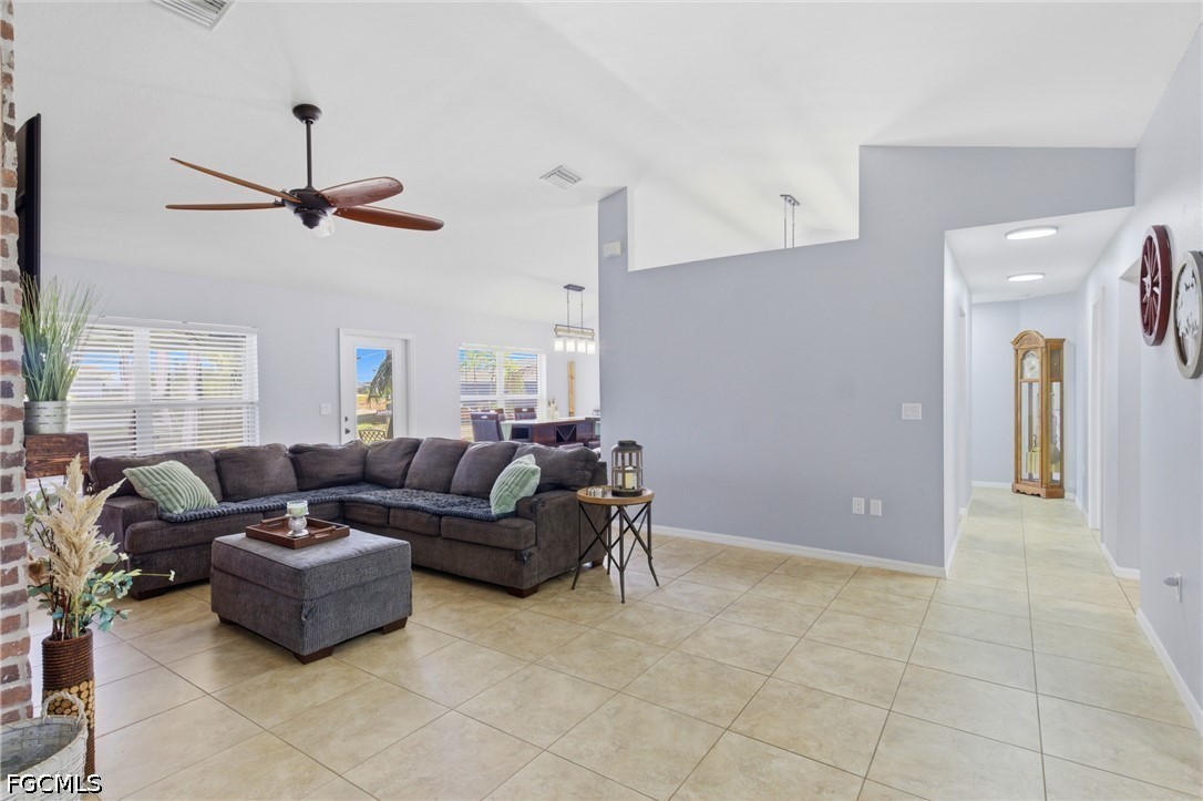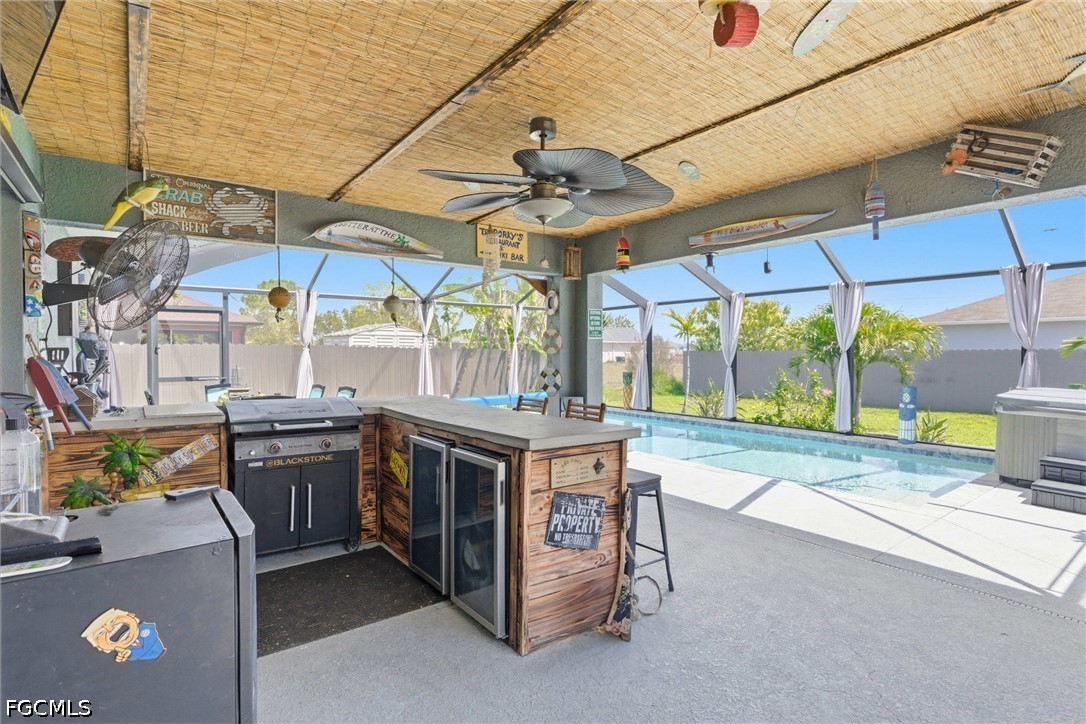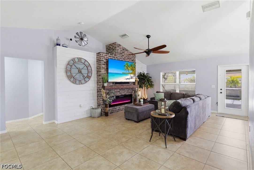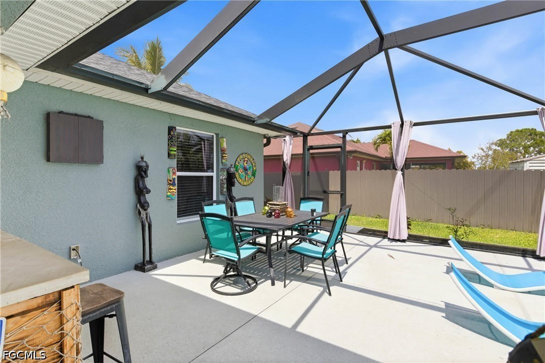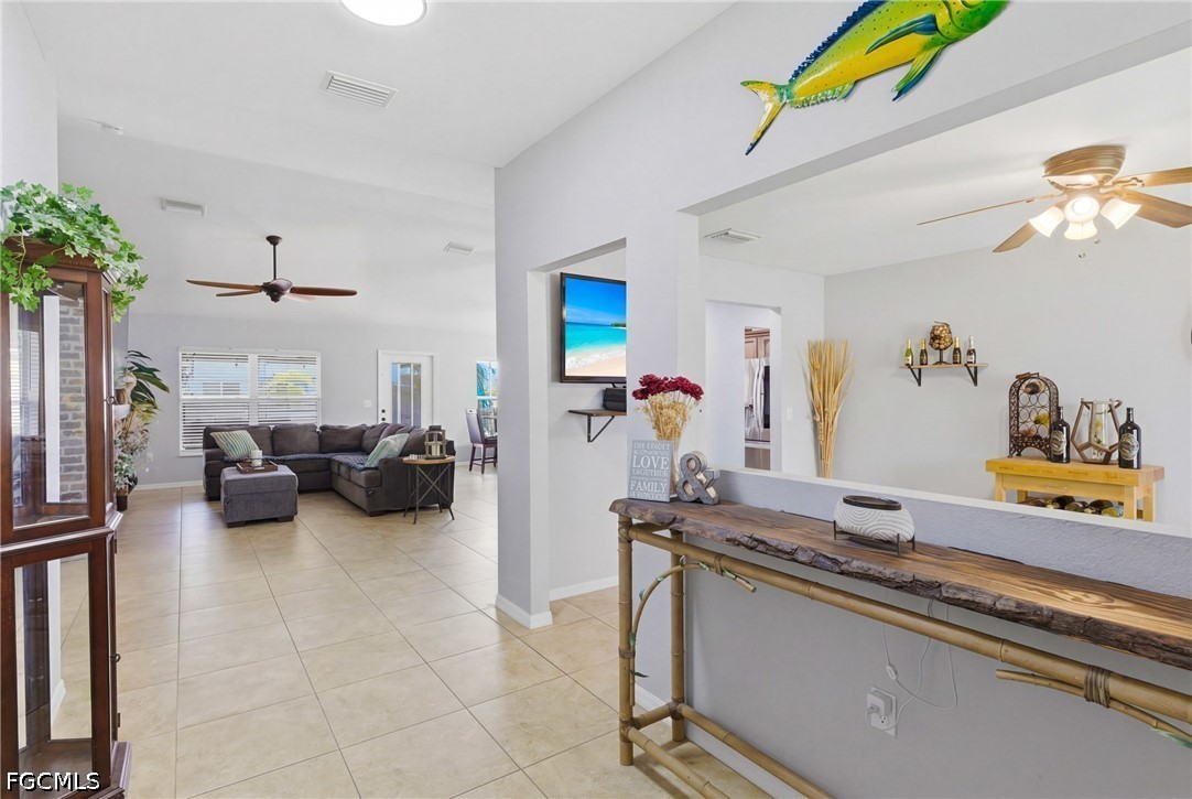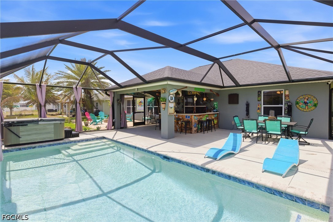 Step into a lifestyle where every day feels like a private resort escape. This extraordinary 4-bedroom + den pool home captures the essence of Florida living at its finest—perfectly positioned outside of a flood zone, offering both peace of mind and unmatched value. Why endure the wait and uncertainty of new construction when this impeccably upgraded, move-in-ready residence delivers over 2,100 square feet of refined, thoughtfully curated living space? From the moment you enter, you’re greeted by a breathtaking open-concept design, adorned with sleek tile flooring throughout and anchored by a dramatic brick accent wall with a glowing electric fireplace—creating a stunning centerpiece that exudes both warmth and sophistication. The intelligently designed split floor plan offers the ultimate in privacy and versatility, featuring a luxurious primary suite, guest bedrooms connected by a stylish Jack & Jill bath, and an additional private suite with its own full bath—ideal for hosting guests or accommodating multi-generational living. But the true showstopper awaits outdoors. Your personal backyard oasis is designed to impress and inspire—where sun-soaked days and starlit evenings come alive. Lounge by the sparkling screened-in pool, unwind in the soothing hot tub, or entertain effortlessly at the tiki bar and fully equipped outdoor kitchen. Gather around the fire pit on cool Florida nights or enjoy the expansive patio space made for unforgettable moments. Every detail of this home has been elevated with recent upgrades, including a newer roof (2022), HVAC system (2022), pool installed in (2023), irrigation system (2025), and a brand-new water heater (2025). The chef’s kitchen shines with updated stainless-steel appliances, while the reverse osmosis system with a 500-gallon reserve tank ensures exceptional water quality. Even the pool equipment has been recently upgraded—leaving nothing for you to do but move in and enjoy. Ideally located just minutes from I-75, premier shopping, dining, and the vibrant energy of Downtown Fort Myers, this home offers the perfect balance of luxury, convenience, and lifestyle. To top it all off, a home warranty with transferable coverage on the HVAC, roof, and reverse osmosis system provides added confidence and peace of mind. This is more than a home—it’s a statement, a sanctuary, and your gateway to the ultimate Florida lifestyle.