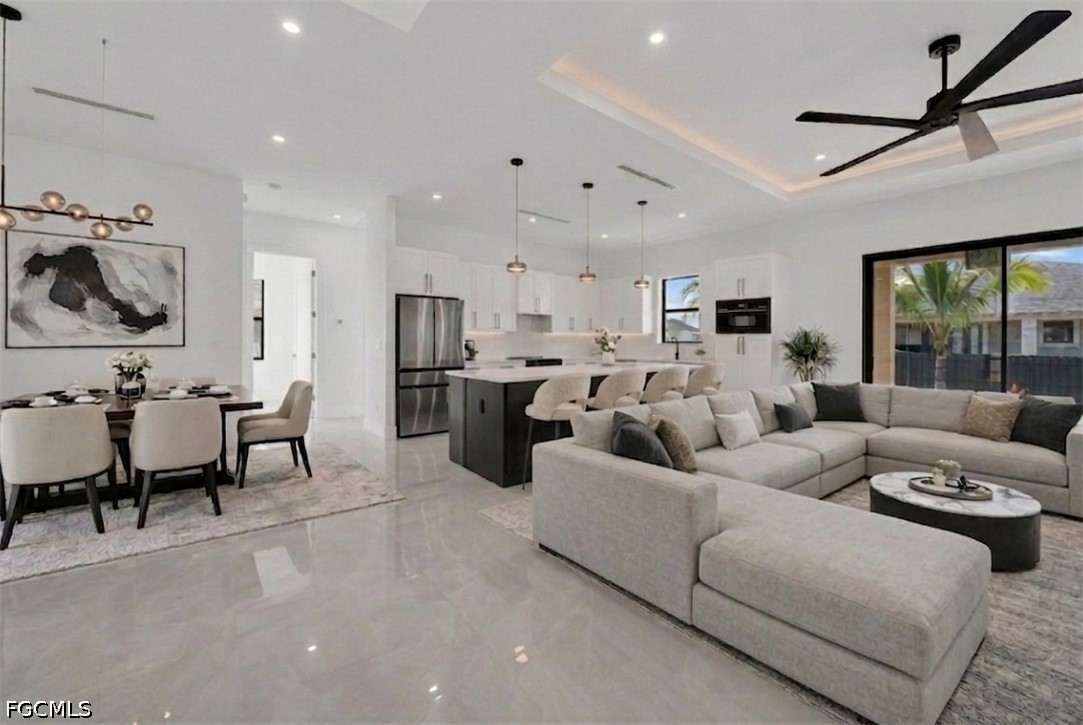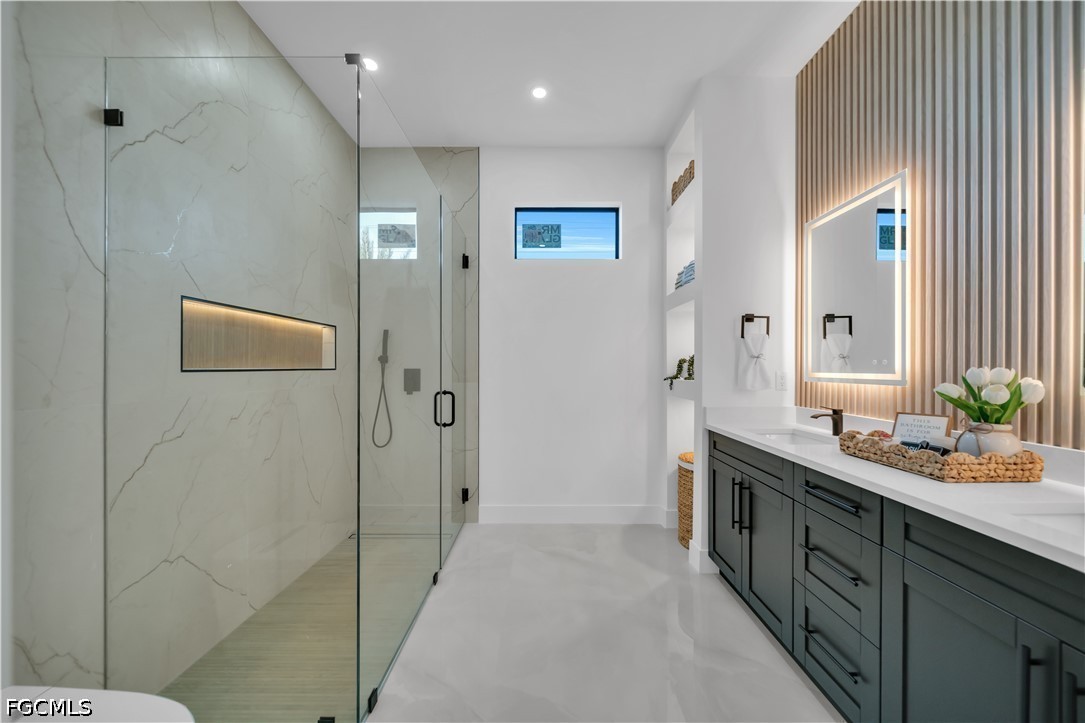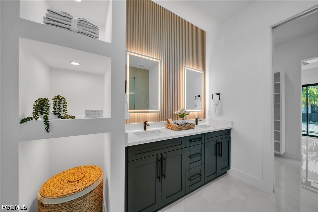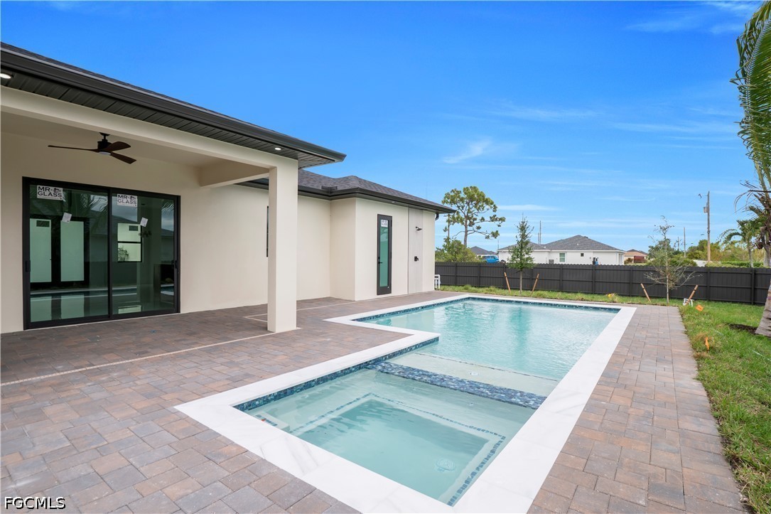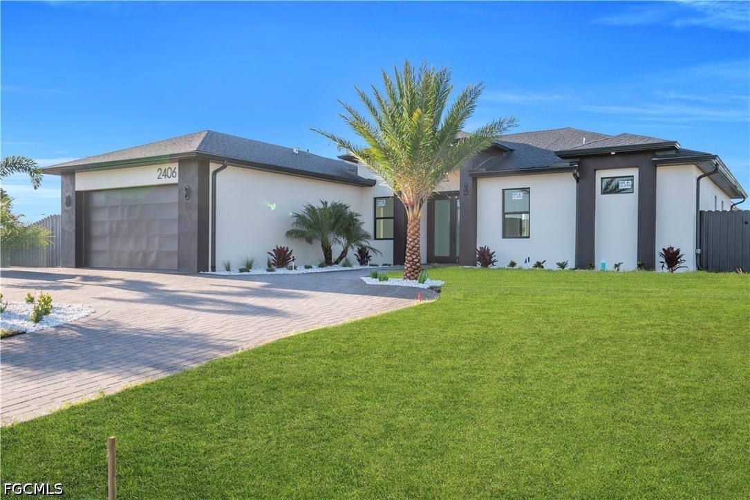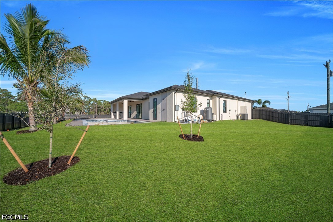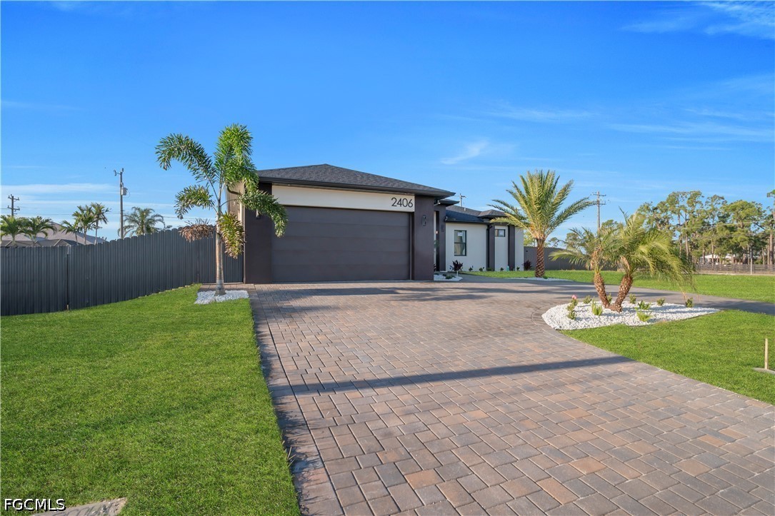 DON'T MISS THIS OPPORTUNITY ON THIS TRIPLE LOT. Experience the ultimate in Florida luxury with this stunning 4-bedroom, 3.5-bathroom masterpiece featuring high ceilings throughout and a rare 2nd in-suite layout. Situated on a massive, fully fenced triple lot with a double gate and a grand circular paver driveway, this home boasts top-tier landscaping with tropical palms and marble rock islands. The interior is a designer’s dream, showcasing a modern oversized kitchen with a huge quartz island, matching backsplash, under-cabinet lighting, pantry, and top-notch smart appliances. Every bedroom features modern custom walk-in closets, while the bathrooms offer luxury light fixtures, glass showers with LED-lit niches, and a high-tech smart toilet in the master bath. The living space is enhanced by elegant ceiling cove lights and a seamless flow to the outdoor oasis. The backyard is a true resort, featuring an extended covered lanai, full deck, and a summer kitchen with a minibar. The modern pool and spa are fully equipped with smart lighting, bubble jets, a sun beach, and therapy jets, conveniently served by a dedicated pool bathroom and outdoor shower. Complete with full impact windows and doors, an epoxy-floored 2-car garage, automated sprinklers, a meter combo electric panel, and gutters around the entire home, this property offers unmatched sophistication and security.