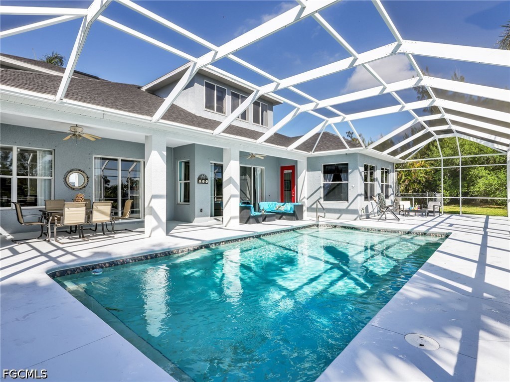 Welcome to a truly exceptional waterfront residence in Cape Coral, offering space, privacy, and a setting that is increasingly rare to find. Situated on an oversized half acre homesite at the inside corner of a quiet freshwater canal, this property enjoys over 200 feet of seawall and wide water views that create a peaceful backdrop throughout the home.
