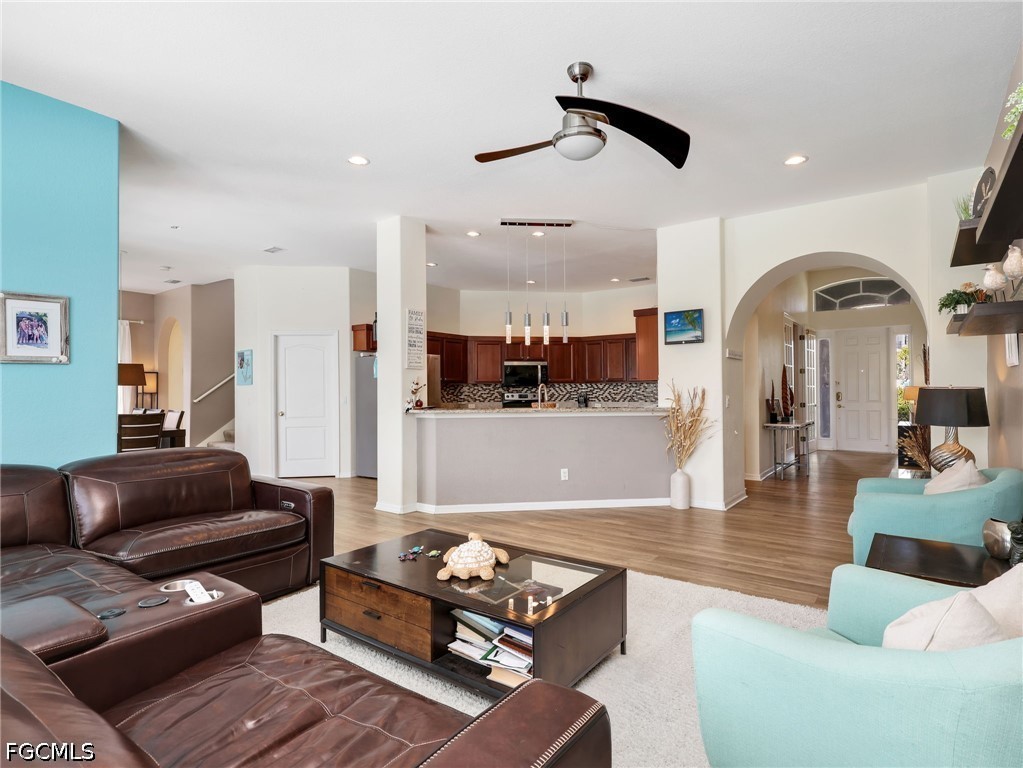 From the moment you arrive, the curb appeal stands out with a long driveway framed by mature Royal Palm trees and lush tropical landscaping that complements the home’s inviting color palette. The expansive lot provides a sense of openness and privacy that sets this property apart from typical Cape Coral homes.