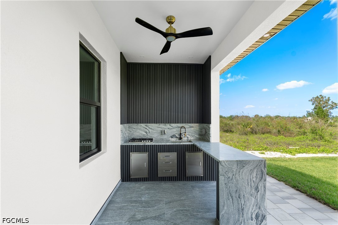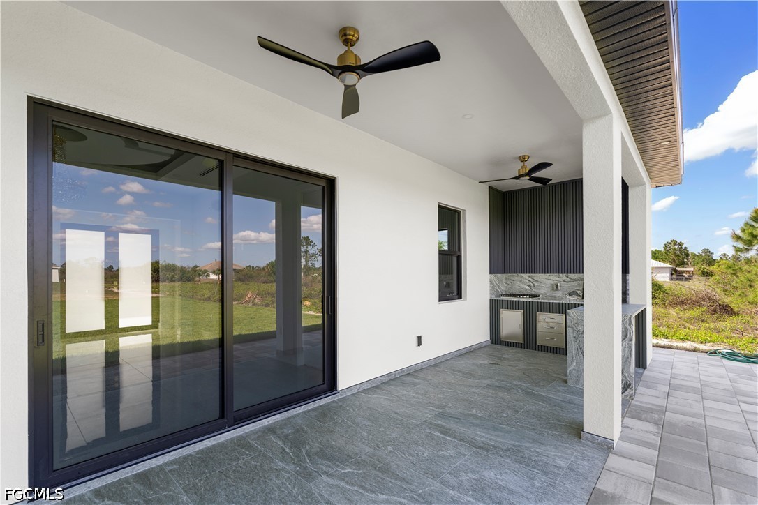 Enjoy seamless indoor-outdoor living with a backyard patio featuring a fully installed outdoor kitchen and direct bathroom access. Additional highlights include a laundry room with washer, dryer, and utility tub, a luminous garage door with crystal inserts, and expansive windows that flood the home with natural light.