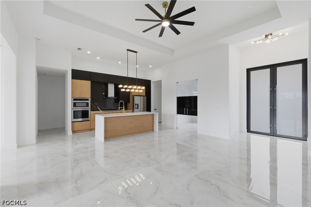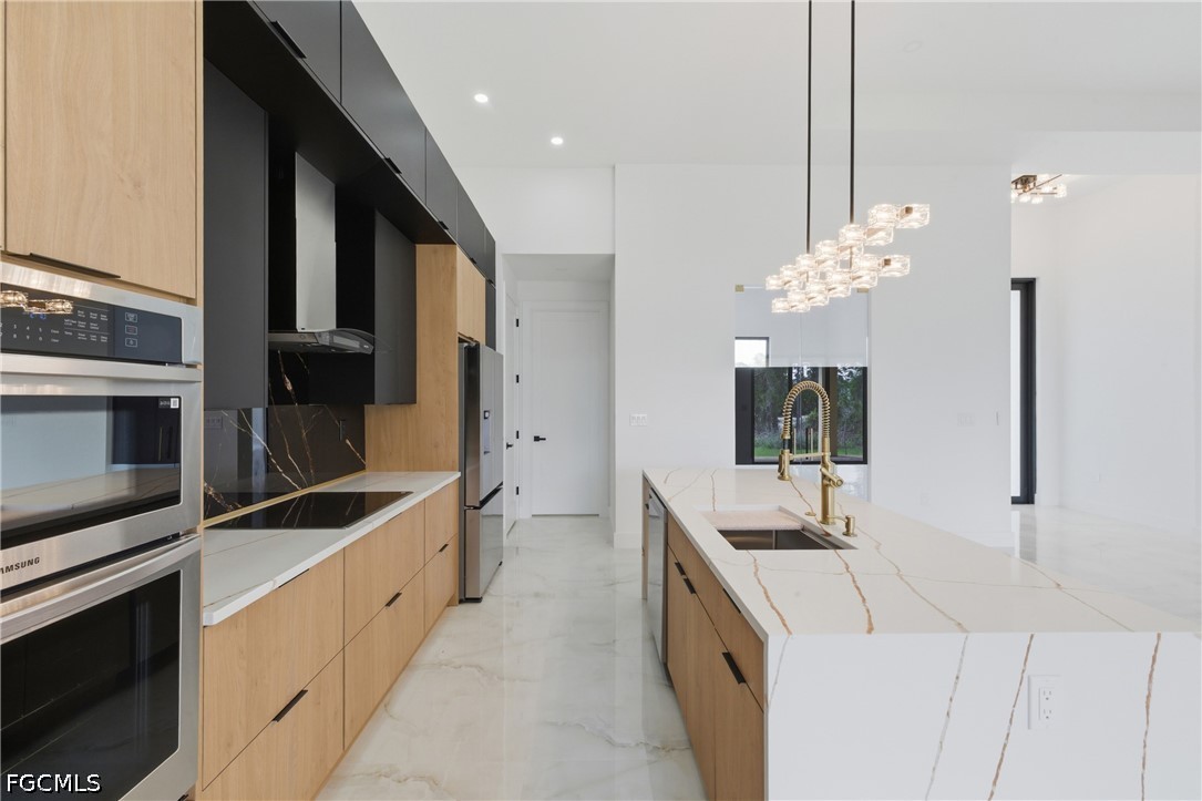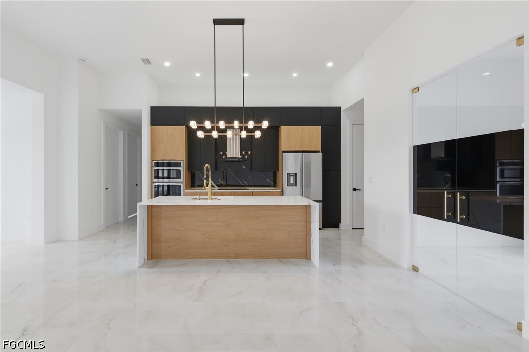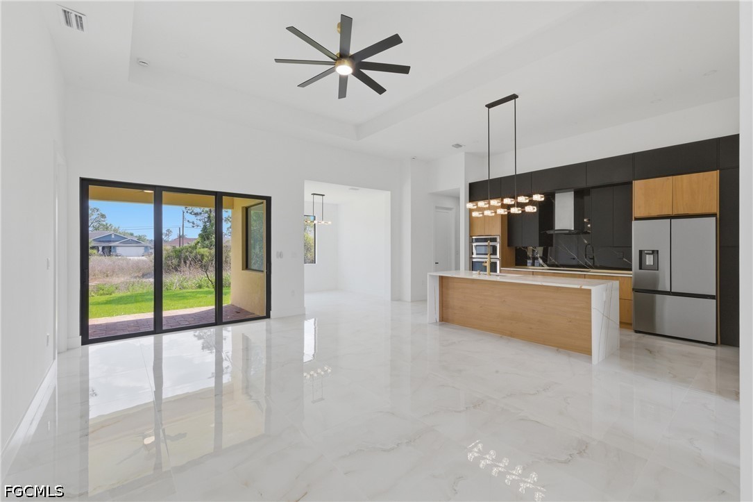 The open concept offers 1910 sq.ft of fabulous living area, tray ceilings, HURRICANE IMPACT DOORS & WINDOWS, custom contemporary cabinetry, quartz countertops . TILE THROUGHOUT! Paver driveway & pool deck. When you view the pictures you will see all the upgrades this new home has to offer. 5 1/4"base & 3 1/4"casing. 8 ft. Large paved lanai area . AMAZING LANDSCAPING! . Spacious family room,The gourmet kitchen is a showstopper, boasting acrylic cabinets, quartz countertops, an oversized kitchen island, and stainless steel appliances—perfect for family meals or gathering with guests. The living room features a contemporary fireplace and opens effortlessly to the expansive lanai. Enjoy true Florida outdoor living with a fully equipped summer kitchen,
