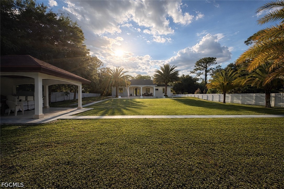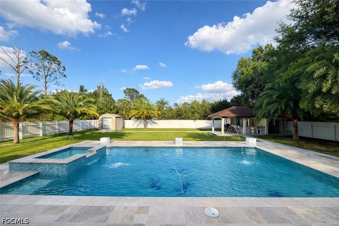 Welcome to 504 Highland Ave in Lehigh Acres, where modern luxury meets privacy and space. This beautifully maintained 3-bedroom, 2-bathroom home offers over 2,000 sq ft of living space on a rare half-acre lot, giving you the perfect blend of comfort and freedom. From the moment you arrive, you’re greeted by a wide paver driveway and mature trees, creating a grand, private entrance that instantly sets this home apart. Step inside and you’ll find soaring ceilings, polished tile flooring, and a bright open-concept layout that feels both elegant and inviting. The heart of the home is the fully upgraded kitchen, featuring sleek white cabinetry, stainless steel appliances, a modern glass island, and designer lighting—perfect for entertaining or everyday living. The living spaces flow seamlessly, highlighted by a contemporary fireplace wall and high-end finishes throughout. The primary suite delivers a true retreat experience, with a spacious layout, upscale lighting, and a spa-like bathroom design. Every detail in this home reflects clean, modern luxury with a move-in-ready feel. Step outside and this is where the property truly separates itself—your own private resort-style backyard featuring a stunning pool with water features, spa, and a covered lanai framed by palm trees. Even better, the home includes a fully equipped outdoor kitchen with a full bathroom, making it perfect for entertaining, hosting events, or enjoying true indoor-outdoor Florida living without ever needing to go back inside. This home is ideal for buyers looking for space, privacy, and a luxury lifestyle setup—all in one. Properties with this level of outdoor functionality and upgrades are extremely hard to find in Lehigh Acres.
