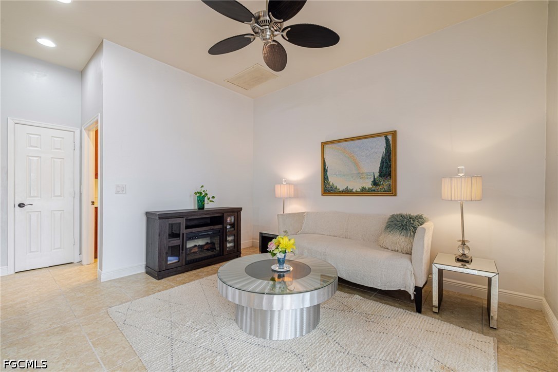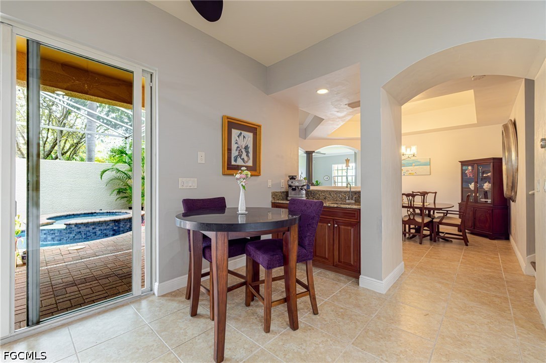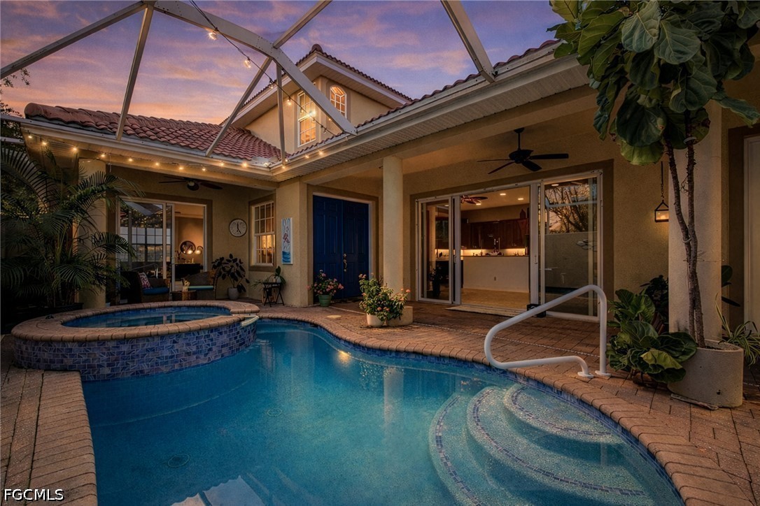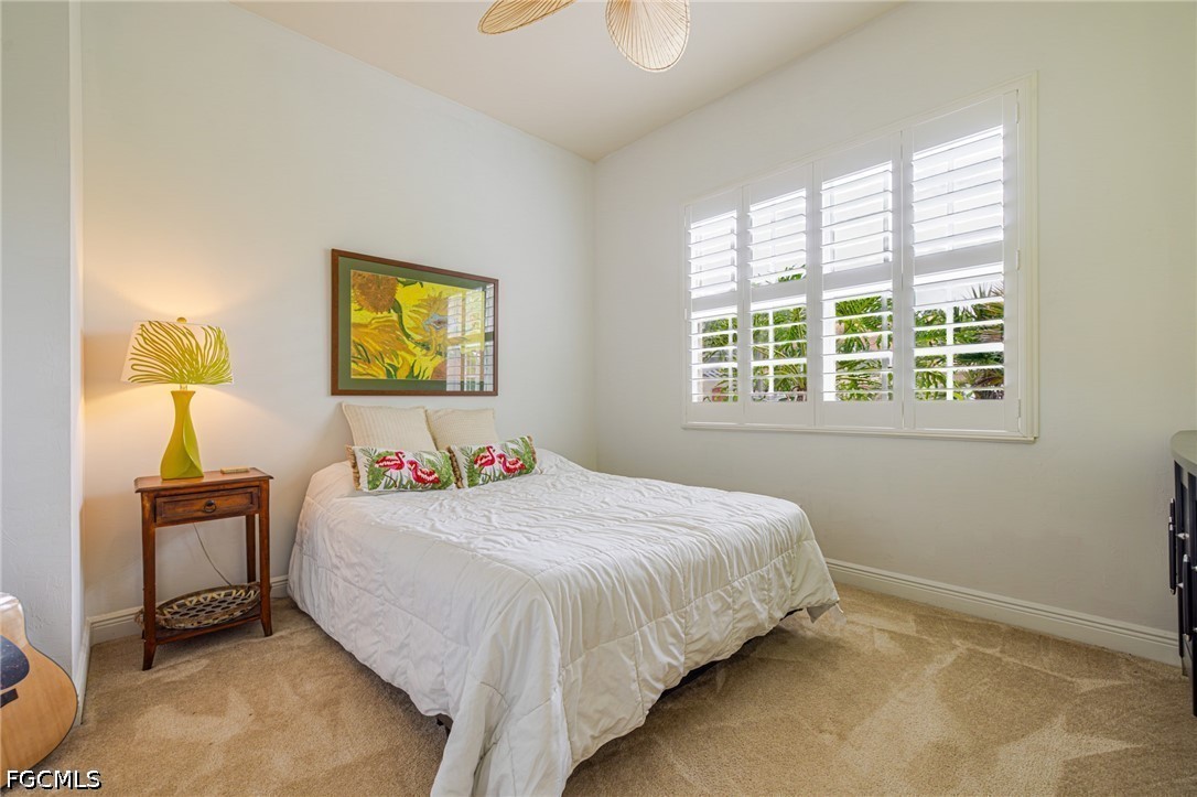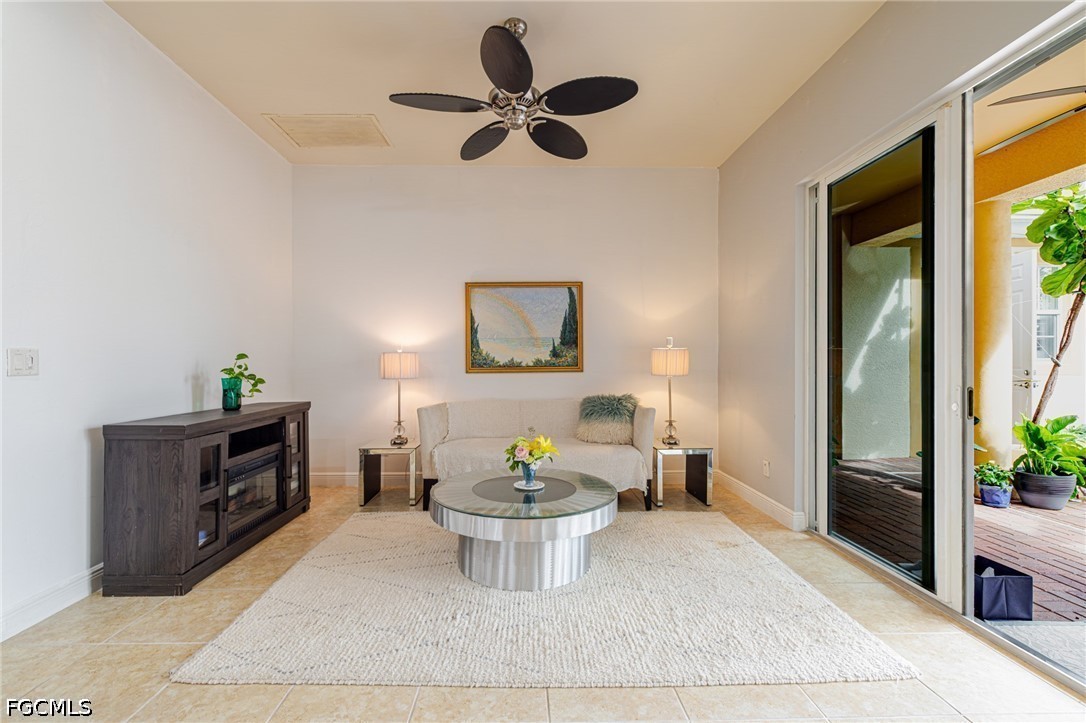Experience the ultimate Florida lifestyle in this stunning 4-bedroom, 4.5-bathroom courtyard-style home. Designed for those who love to entertain, the heart of this residence is a private, screened-in courtyard featuring a waterfall and a 5-person spa—your own tropical oasis. This spacious end-unit offers over 2,700 sq. ft. of living space with a flexible floor plan, including a private guest cabana perfect for visitors or a home office.Inside, enjoy high-end finishes like granite countertops, a large island kitchen with a walk-in pantry, and a primary suite on the main level featuring tray ceilings and a large walk-in closet. Additional highlights include impact-resistant windows/doors for peace of mind along with a generator and a 2-car garage. Located in a gated community just minutes from Bell Tower Shops, fine dining, and Gulf beaches. Community amenities include a resort-style pool, a second pool, hot tubs, tennis courts, pickle ball courts and 3+ miles of walking trails. Not in a FLOOD ZONE will give you peace of mind and save on insurance!