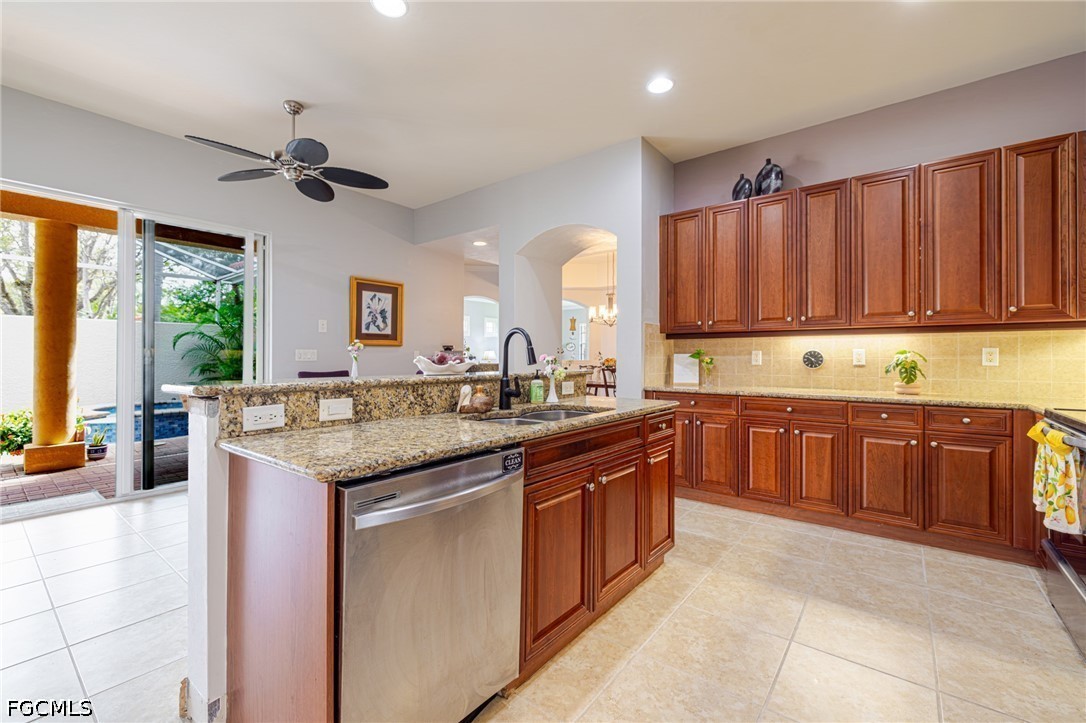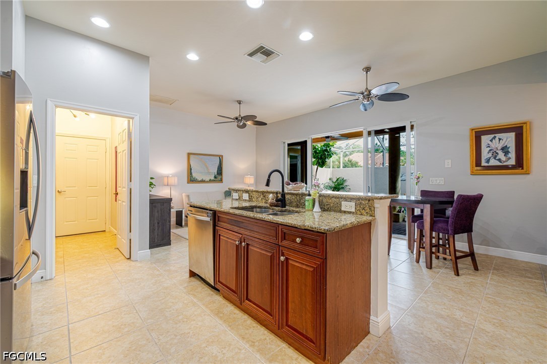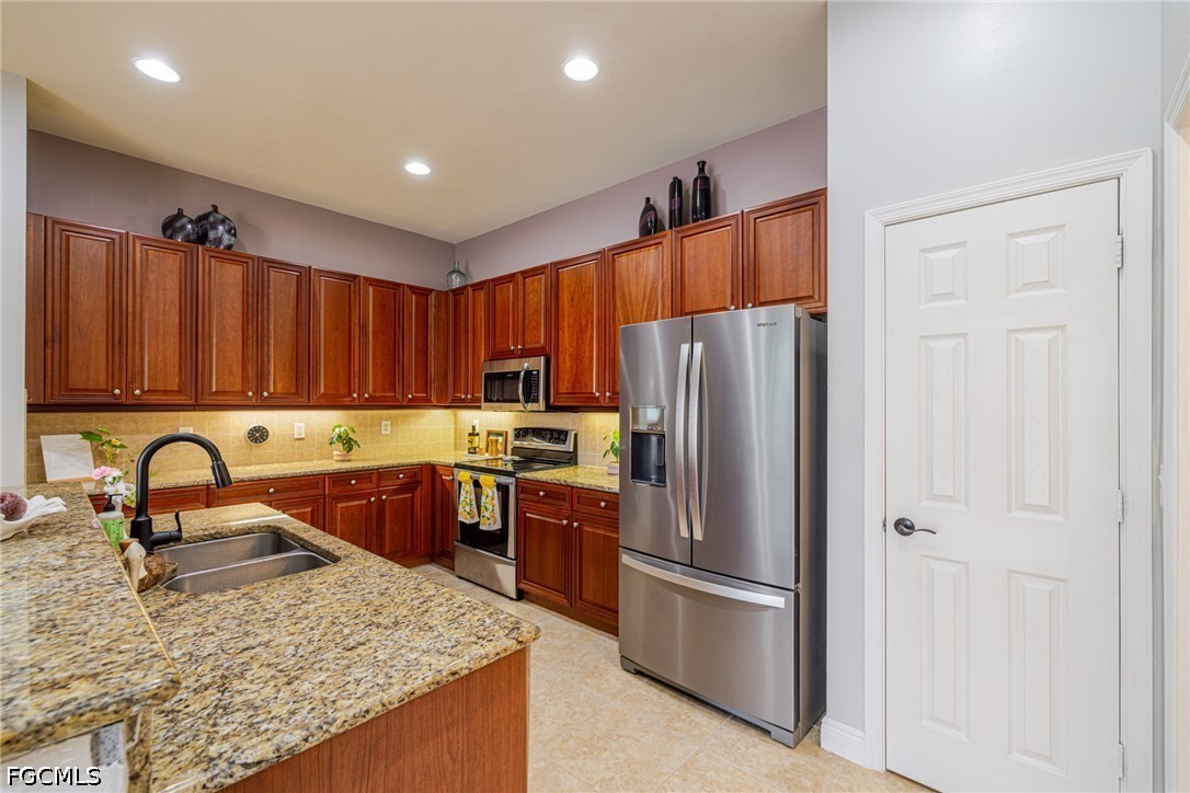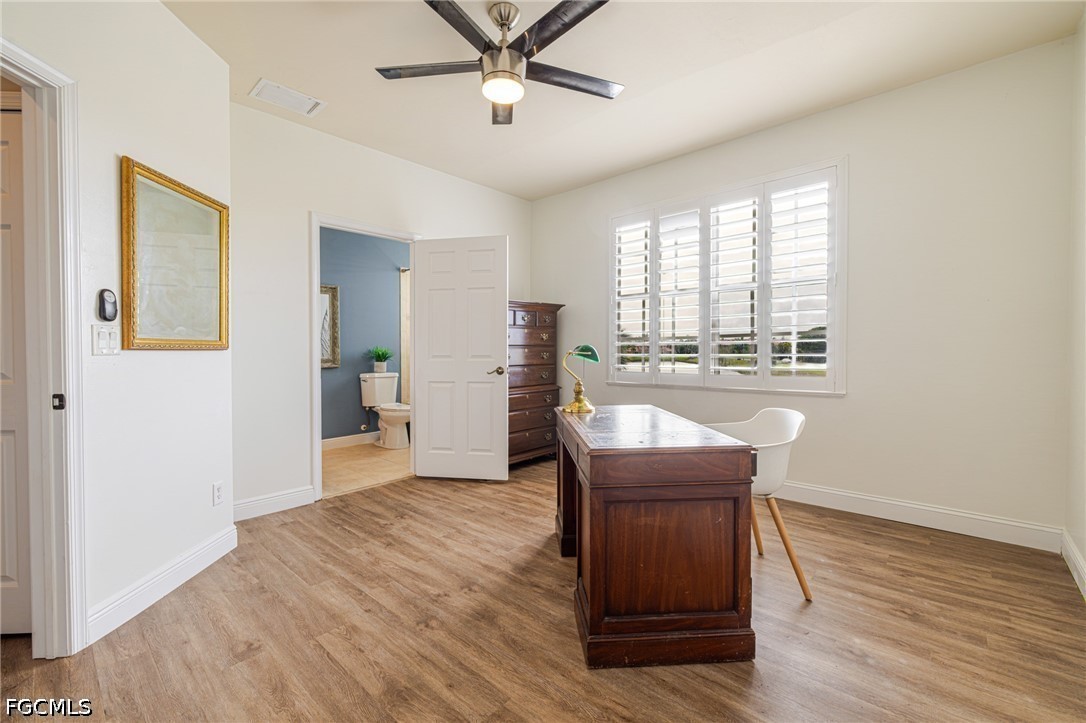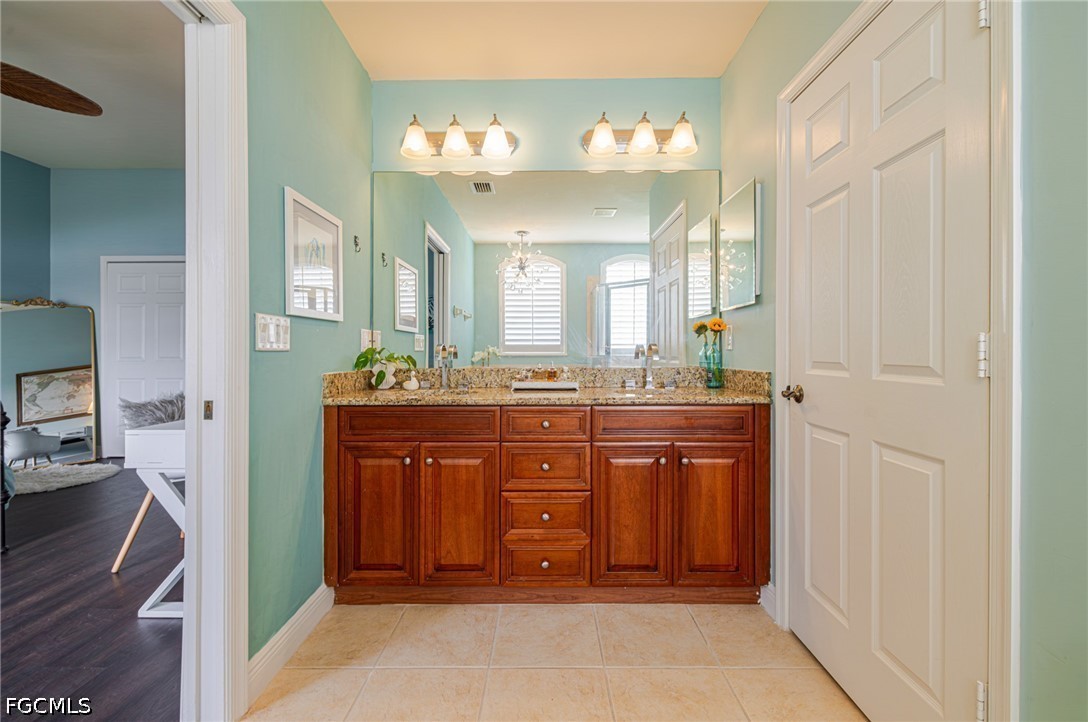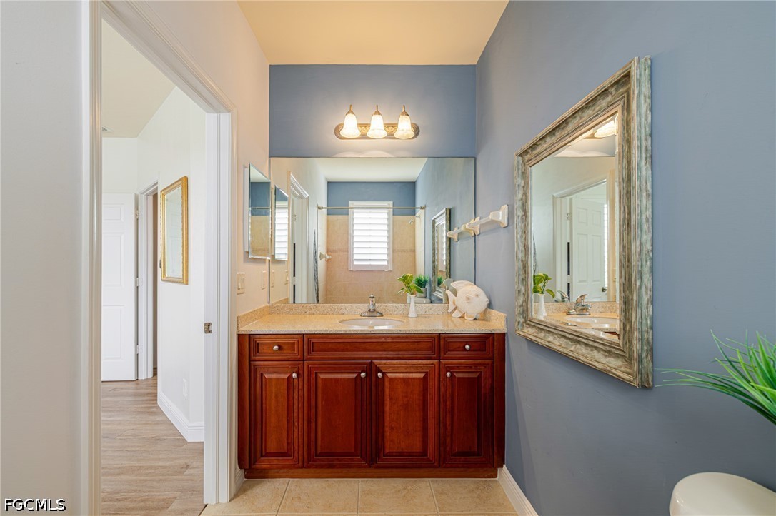 Experience the ultimate Florida lifestyle in this stunning 4-bedroom, 4.5-bathroom courtyard-style home. Designed for those who love to entertain, the heart of this residence is a private, screened-in courtyard featuring a waterfall and a 5-person spa—your own tropical oasis. This spacious end-unit offers over 2,700 sq. ft. of living space with a flexible floor plan, including a private guest cabana perfect for visitors or a home office.Inside, enjoy high-end finishes like granite countertops, a large island kitchen with a walk-in pantry, and a primary suite on the main level featuring tray ceilings and a large walk-in closet. Additional highlights include impact-resistant windows/doors for peace of mind along with a generator and a 2-car garage. Located in a gated community just minutes from Bell Tower Shops, fine dining, and Gulf beaches. Community amenities include a resort-style pool, a second pool, hot tubs, tennis courts, pickle ball courts and 3+ miles of walking trails. Not in a FLOOD ZONE will give you peace of mind and save on insurance!