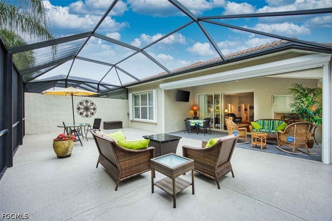 Welcome to living the dream in Colonial Country Club! This stunning twin villa is truly move-in ready with all the upgrades you could ever want. The kitchen is a chef's delight with Quartz counters, new stainless steel appliances, and updated cabinets and lighting. The extended lanai offers a peaceful view of the community's preserve, perfect for enjoying your morning coffee or hosting a dinner party. The den features a custom Murphy bed for guests, and the accordion shutters and Kevlar storm protection provide peace of mind during hurricane season. Luxury Vinyl Plank flooring adds a touch of elegance throughout most of the home. With a newer air conditioning unit with a warranty until 2036 and a new hot water heater and a new roof, you can rest easy knowing that your home is well equipped with top-of-the-line amenities. The award-winning Colonial Country club has so much to offer. This home comes with a social membership which includes the clubhouse restaurant and bar, pay as you play golf, 2 community pools, tennis, pickleball, a newly renovated fitness center with state of the art equipment, Bocce ball and miles of trails through the communities preserve. Don't miss out on this opportunity to live in luxury and style in Colonial Country Club. Move right in and start enjoying the Florida lifestyle today!
