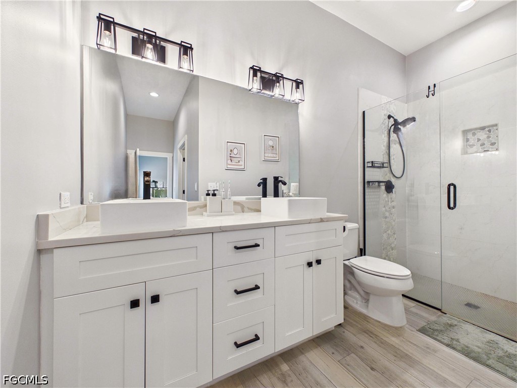 You'll instantly notice the gorgeous Calacatta quartz countertops, stainless steel appliances, huge kitchen island, upgraded wood-looking tile throughout the home, luxurious bathrooms with glass enclosure showers, handmade cement tile, upgraded doors and trim, high-end fixtures and sinks, double closets in bedrooms, trellises with a gorgeous wood-style garage door.