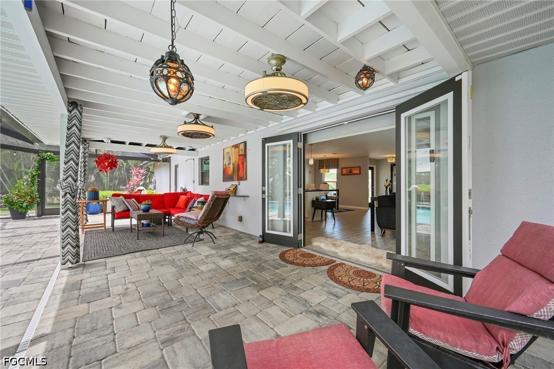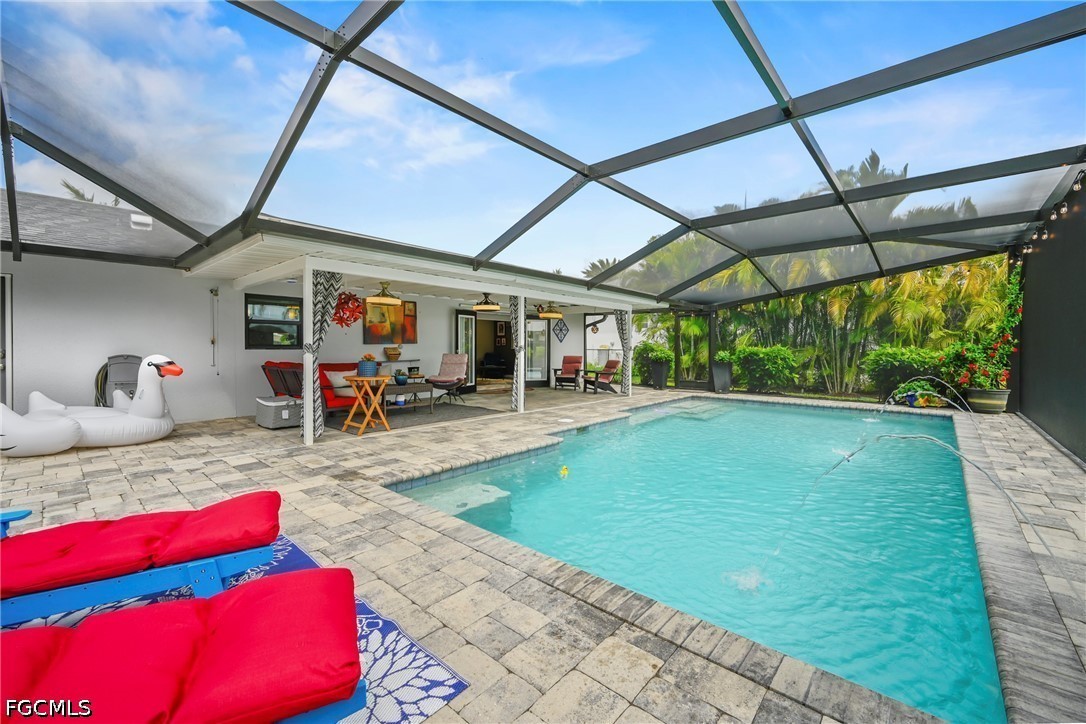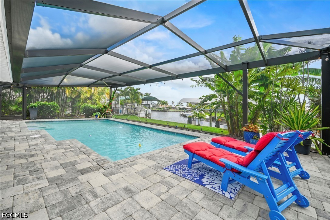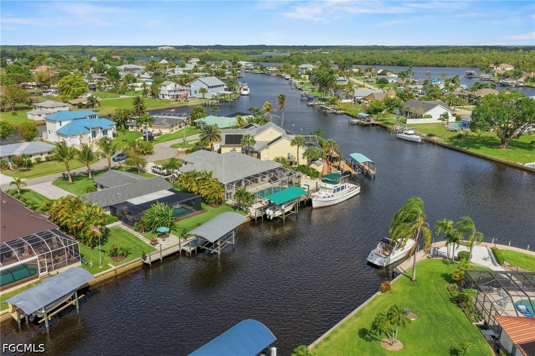 PARADISE!!! CHECK THIS OUT!! Welcome to your slice of Southwest Florida paradise! This beautifully updated 3-bedroom, 2-bath home offers DIRECT GULF ACCESS and the perfect blend of modern upgrades, comfort, and outdoor living. Step inside to an open-concept layout featuring tile flooring throughout and a spacious kitchen with granite countertops, an oversized island, and SMART Samsung appliances (2023)—ideal for both everyday living and entertaining. The home is equipped with a SMART thermostat, ADT security system, and a convenient all-in-one washer/dryer unit. Major updates provide peace of mind, including hurricane impact windows and doors, a 2022 CAT 3-rated 3D roof, new A/C (2025), and a 2022 water heater. The outdoor space is where this home truly shines! Enjoy a saltwater pool, outdoor shower, and a PANORAMIC LANAI ENCLOSURE with Super Screen and Gutters for enhanced privacy and unobstructed views. The covered lanai creates the perfect setting for relaxing or entertaining year-round. BOATERS will love the 10,000 lb boat lift with captain’s walk and TREX dock, plus an oversized 13x30 lift cover designed to accommodate larger vessels—making access to the Gulf quick and effortless. Additional features include a SMART pool pump (2023), epoxy-coated garage flooring, and lush tropical landscaping with banana and coconut trees. Best of all—NO HOA restrictions!