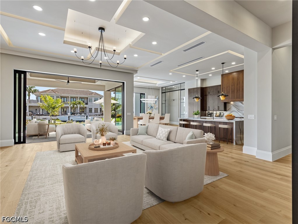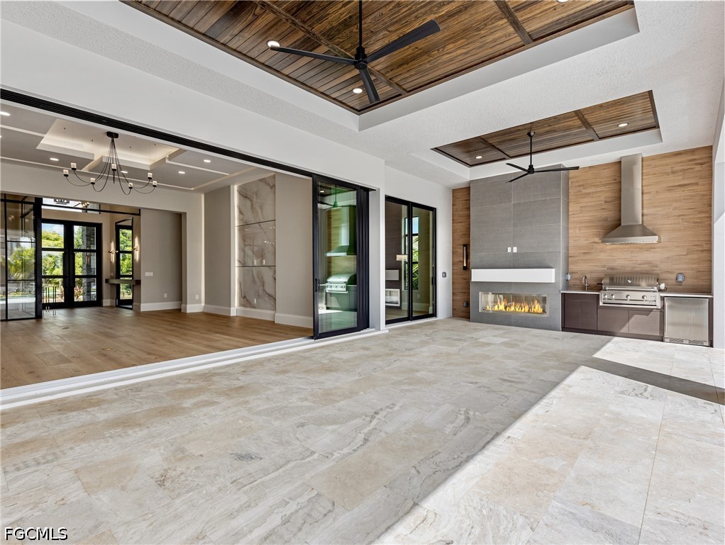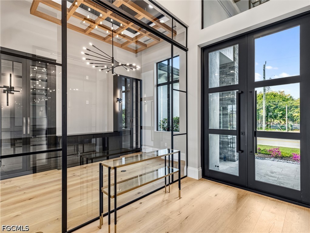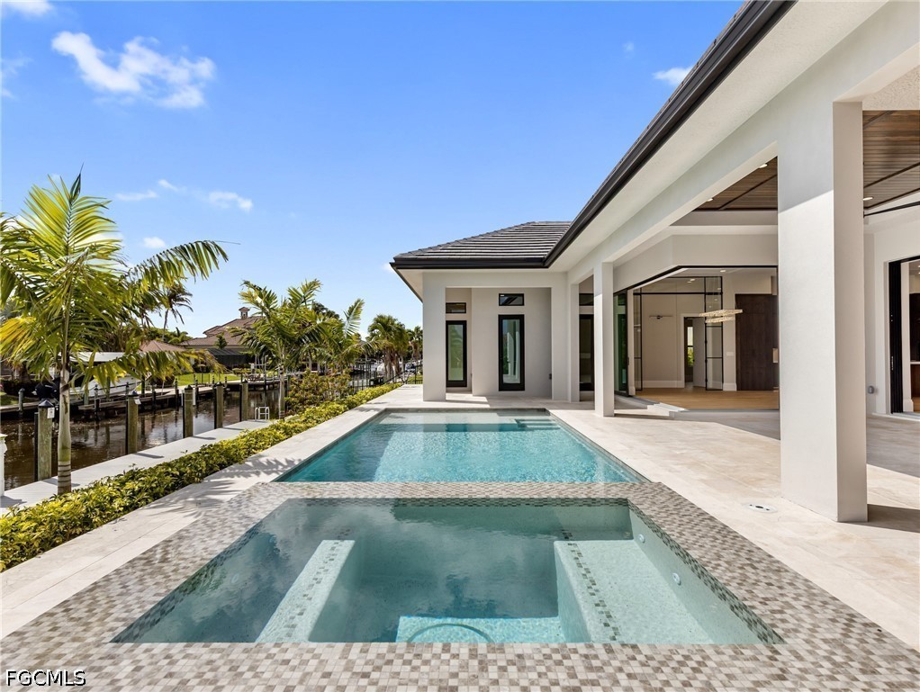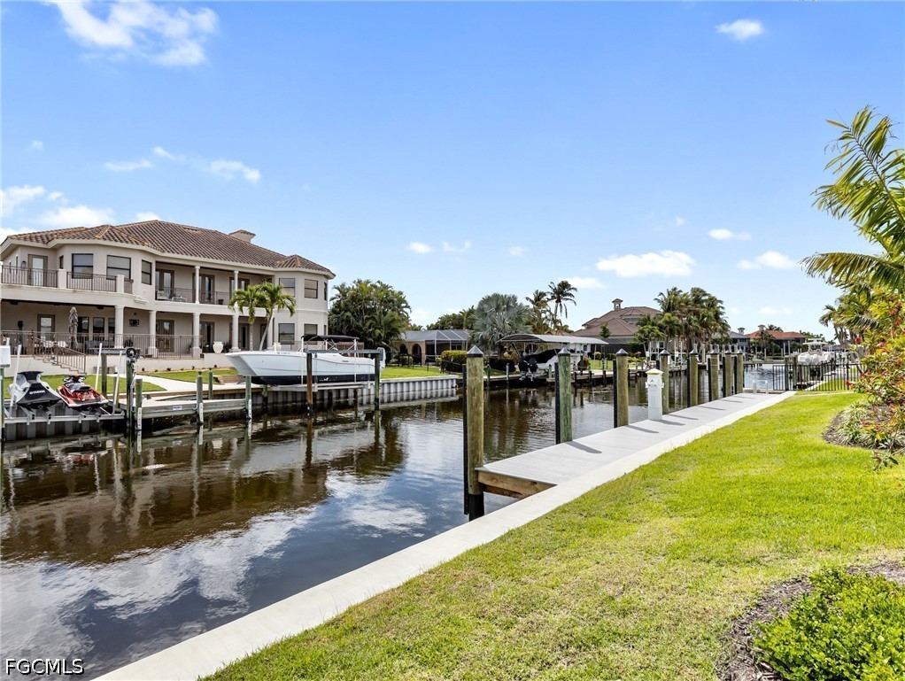 New waterfront luxury model home by Edge Water Development Group is now completed and available for immediate occupancy! Situated on a direct gulf access saltwater canal in prestigious Palmetto Point adjacent to Gulf Harbour Yacht and Country Club, this address is THE location, location, location of Fort Myers. By the numbers 95 linear feet of canal frontage, 65 ft yacht dock with shore power, living area of 3,470 sq ft, total area under roof is 5,114 sq ft, great room, 4 bedroom suites each with walk-in closets, 4 full baths, glass walled home office, powder room, pool bath, and 3-car garage with epoxy floors. This garage has 12.5 ft ceilings for your car lifts! Speaking of ceilings, wait until you see the exceptional custom coffered tray ceilings in EVERY room accented by exquisite lighting fixtures. Ceiling heights are 17 ft in the foyer, 14 ft in the office, 12 ft throughout, plus an additional 1-2 ft height inside the trays. Interior doors are 8 ft while exterior doors are 10 ft. This home exudes quality including what you can’t see behind the fit and finish such as spray foam insulation on the underside of the roof deck in the attic as well as sheet insulation behind the drywall on exterior concrete block walls. Extensive insulation, impact rated windows, and impact rated sliding glass doors create a quietness and energy efficiency you will appreciate. Edge Water Development Group fulfills certain visually important key trades in-house enabling them to provide attention to detail, perfection, and unsurpassed craftsmanship. Amish cabinetry, wood flooring throughout, and custom headboard walls! See photos and video for the primary bedroom, primary bath, kitchen, home office, pool, spa, expansive outdoor living area, outdoor fireplace, summer kitchen, laundry room, and technology mud room. Appliances include WOLF, SubZero, Bosch, and Generac. Natural gas powers the tankless water heater, five-burner gas cooktop, generator, and fireplace. YES, it has a fenced back yard. New luxury homes on the water in Fort Myers are nearly impossible to find, so call today!