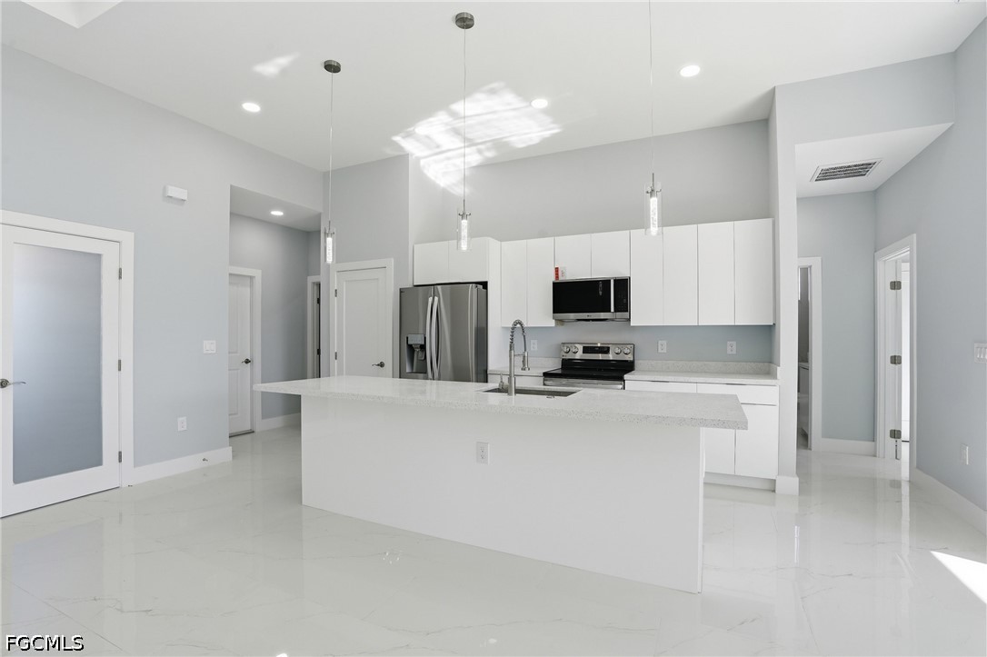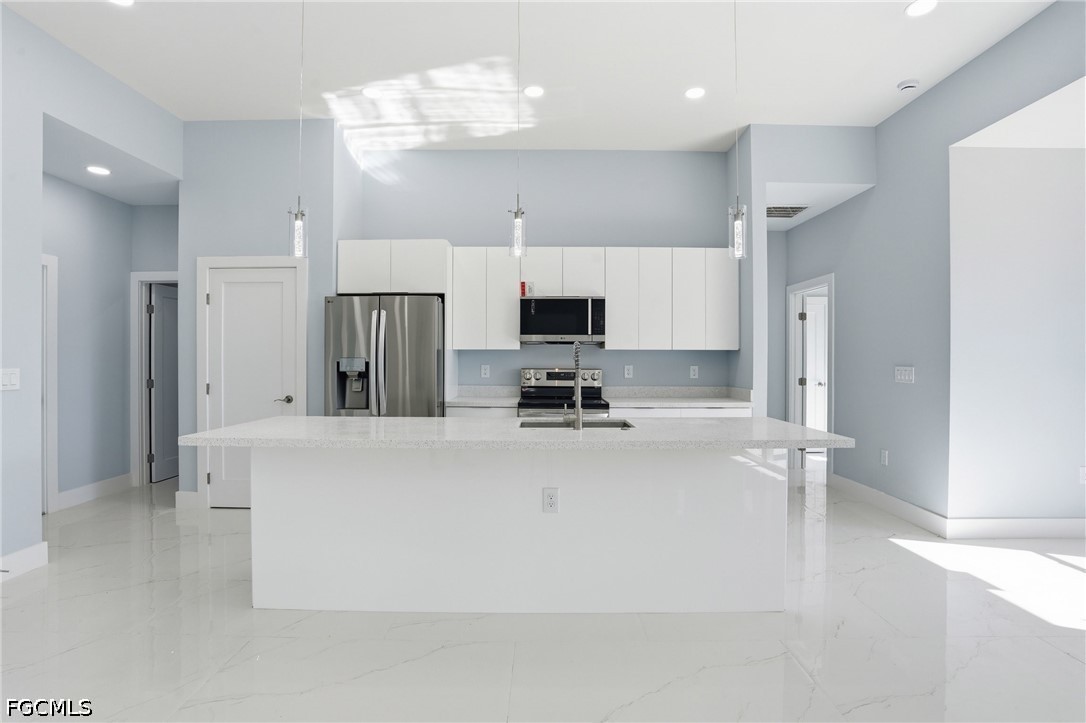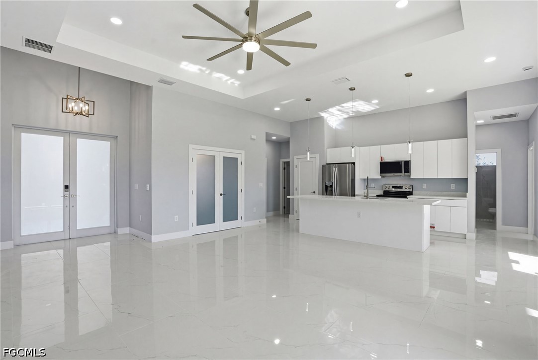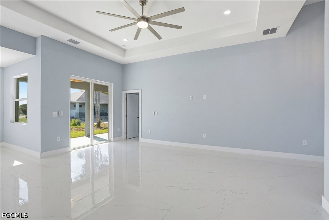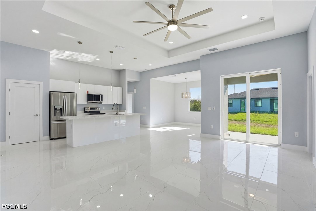 Experience elevated new construction living in Lehigh Acres with this beautifully designed 3-bedroom + den residence featuring one of the builder’s most sought-after floor plans. Thoughtfully crafted for modern Florida lifestyles, the open-concept design seamlessly connects the kitchen, dining, and spacious main living areas, creating an effortless flow for entertaining and everyday comfort. Architectural tray ceilings add sophistication throughout, while the versatile den offers the perfect space for a home office, media room, guest retreat, or flex room. The chef-inspired kitchen is complemented by stainless steel appliances, designer finishes, and clean modern lines that today’s buyers are actively searching for. The private owner’s suite serves as a luxurious retreat, complete with a walk-around shower and separate soaking tub, delivering a spa-inspired primary bath experience. Hurricane impact windows enhance storm protection and peace of mind, while the Flood Zone X location offers the added benefit of no lender-required flood insurance, a major insurance and cost advantage in Southwest Florida. Outdoor living shines with a covered lanai and outdoor kitchen, perfect for year-round entertaining, weekend cookouts, and enjoying the Florida lifestyle. Additional highlights include a dedicated laundry room, spacious 2-car garage, and quality craftsmanship throughout. Ideally situated in a convenient Lehigh Acres location near SR-82, Fort Myers, shopping, dining, and Southwest Florida beaches, this move-in-ready home blends modern luxury, lifestyle convenience, and long-term value.
