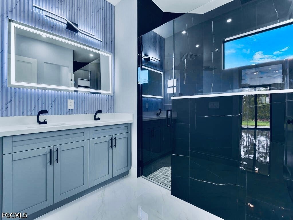The primary bathroom features an outstanding tiled walk-in shower with dual rainfall showerheads, multiple fixtures, built-in niches, and a FRAMELESS glass door, along with awarding dual-sink vanities and elegant bidets.