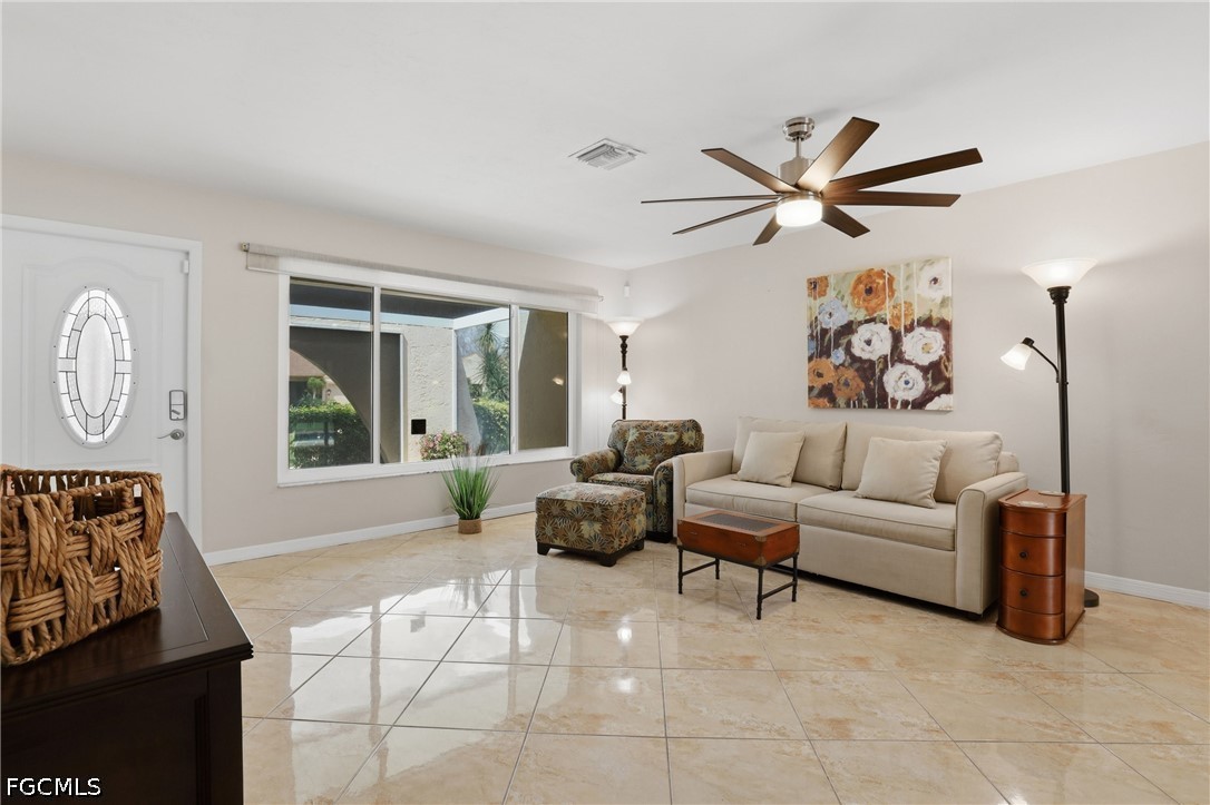 Your Florida Dream Home awaits! Ideally located just minutes from beaches, restaurants, shopping, entertainment, and healthcare, this beautifully maintained 3-BEDROOM, 2-BATH residence offers the perfect blend of comfort, style, and efficiency. Inside, a light, neutral color palette and elegant porcelain tile flooring create a warm, inviting atmosphere, while the thoughtfully designed SPLIT-FLOOR PLAN provides both privacy and functionality. The spacious living and dining areas flow seamlessly to both the FRONT AND BACK SCREENED ENCLOSED LANAIS. Enjoy the back lanai, complete with a SPARKLING HEATED SALTWATER POOL plus a separate SPA, which creates a true indoor-outdoor lifestyle perfect for entertaining or relaxing in your own private retreat. The remarkable floor plan allows abundant NATURAL LIGHT throughout the main living areas. The expansive, FULLY FENCED BACKYARD offers plenty of room for pets and lively family activities, from games and sports to relaxing evenings around a fire pit or enjoying meals in a charming picnic area. A screened-in front lanai creates an inviting outdoor space for neighborhood guests & friends. The DESIGNER KITCHEN features granite countertops, stainless steel appliances, rich wood cabinetry, and a generous pantry. The PRIMARY SUITE offers a large bedroom, walk-in closet and access to the pool and back lanai. This home features an inviting FAMILY ROOM directly adjacent to the kitchen as well as easy access to the living/dining area. TWO ADDITIONAL BEDROOMS have use of the second bath which has toilet/bidet, corian countertop, and storage. This home is LOADED WITH UPGRADES, including HURRICANE IMPACT WINDOWS AND DOORS(2020), paid-off solar panels with LOW ELECTRIC BILLS around $70/month, a BRAND-NEW EFFICIENCY RHEEM HVAC SYSTEM with UV SANITIZING LIGHT (installed 01/2026), FRESHLY CLEANED DUCTWORK, an ADT SECURITY SYSTEM, DESIGNER LIGHTING & FANS, UTILITY ROOM with WASHER/DRYER. The amazing features continue: a DESIRABLE SOUTHERN EXPOSURE, a WIDENED DRIVEWAY, and a LARGE TWO-CAR GARAGE with ELECTRIC VEHICLE CHARGING STATION, & LOTS OF BUILT-IN SHELVING. Located in Flood Zone X with no history of flooding, plus an optional transferable flood insurance policy for $1,081 per year for added peace of mind. Best of all, there are NO CDD FEES, NO CITY TAXES, and NO SPECIAL ASSESSMENTS, a VOLUNTARY HOA, and a transferable HOME WARRANTY is paid through 2031. Offering privacy, comfort, and countless features for entertaining, relaxation, and enjoying the Florida lifestyle, this exceptional home is a must-see—schedule your showing today before it’s gone!