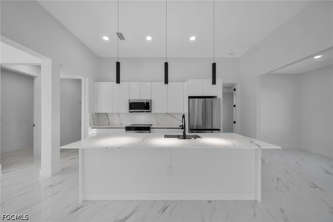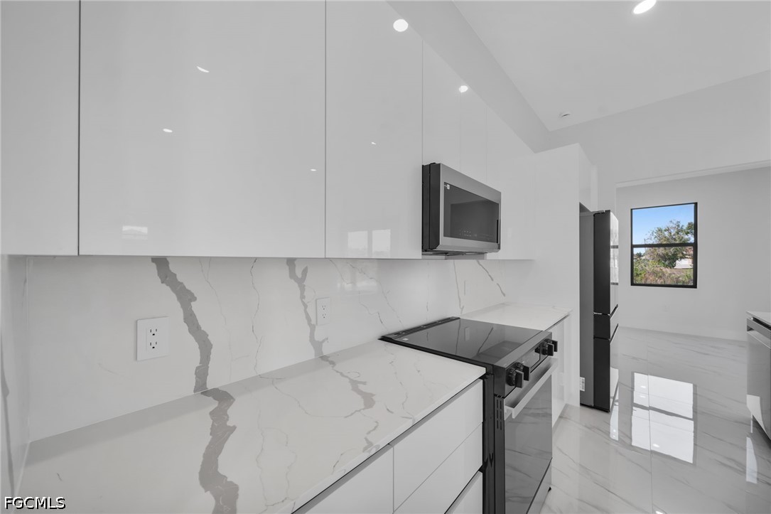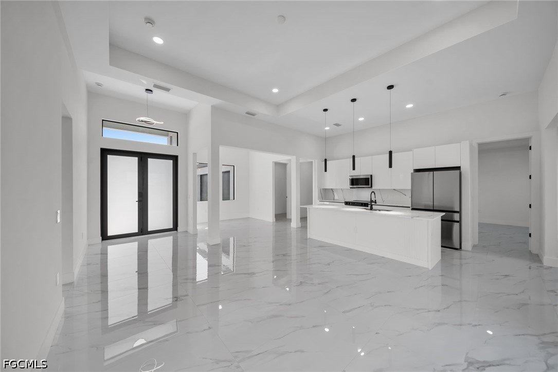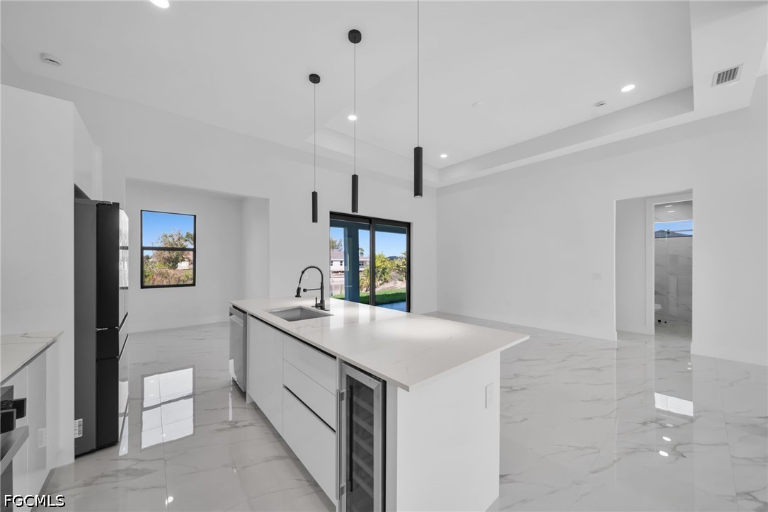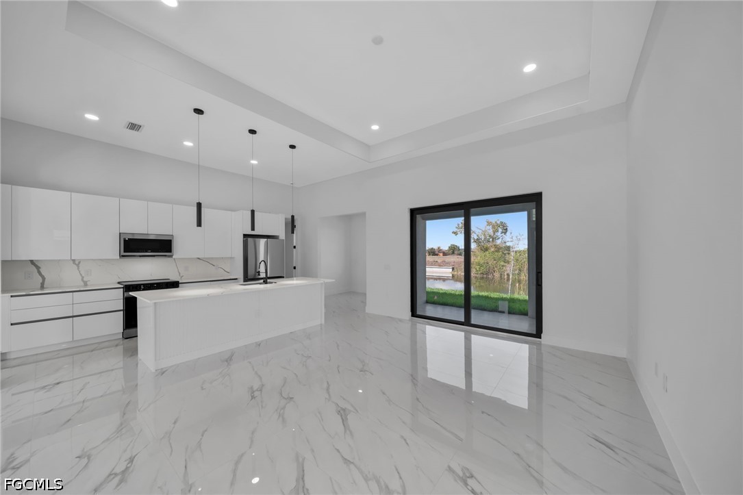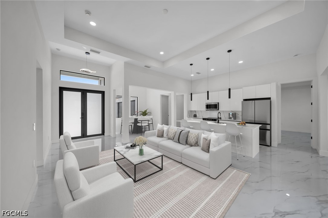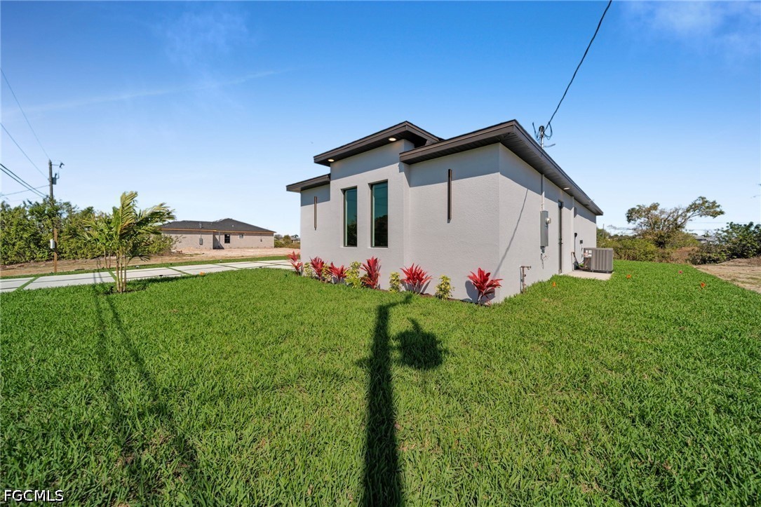 Welcome to this stunning new construction waterfront home on a navigable canal, featuring one of the most desirable south-facing backyards in the growing NE area of Cape Coral! This beautifully designed property offers 3 bedrooms + den, 3 full bathrooms, and a spacious open-concept layout perfect for everyday living.