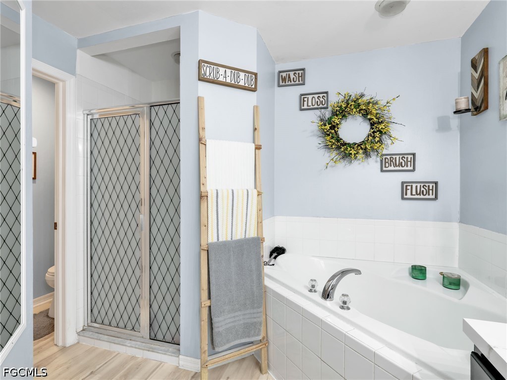 Retreat to the spacious primary suite featuring a huge walk-in closet, double vanity, and a deep soaking tub..