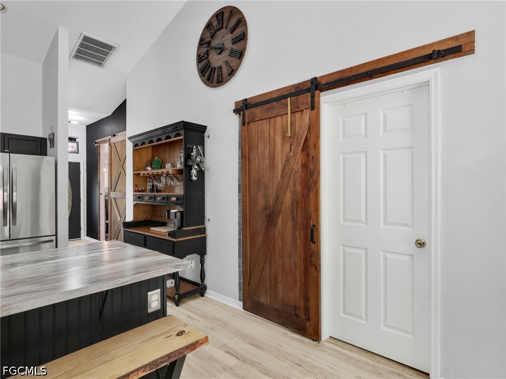 This beautifully remodeled 3-bedroom + den, 2-bath home offers over 2,000 sq ft of light-filled, versatile living space designed to impress. From the moment you walk in, you’ll notice the custom barn doors, stunning feature fireplace wall, and luxury vinyl plank flooring throughout. The open-concept kitchen with a massive island seamlessly connects the living spaces, perfect for entertaining and everyday living.